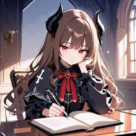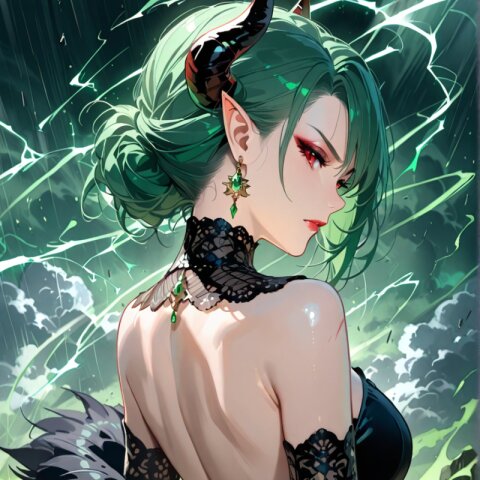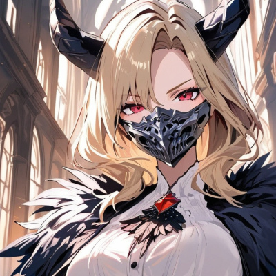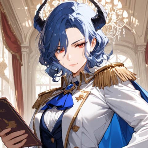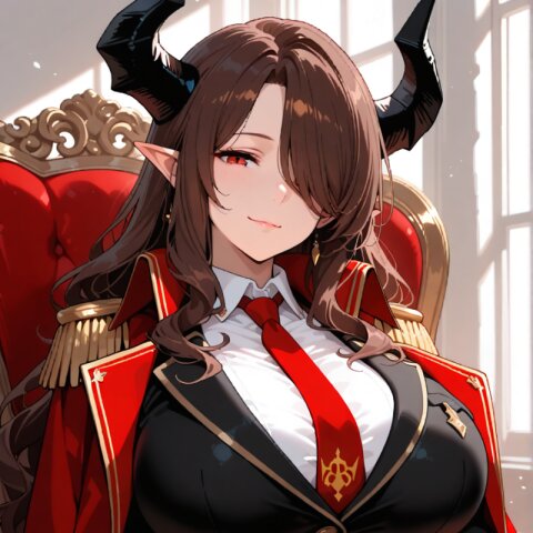 thirties woman, mature woman, wolf ears, animal ears, parted bangs, black hair, wavy hair, long hair, monocle, evil smirk, evil grin, red eyes, Gorgeous decoration, black jacket suit, Ruby brooch, black Ascot, red side cape, large breast, Indoor Environments, upper body, Gothic Palace, *HassakuXLを使用しています。加筆修正をしている為、そのまま入力しても出力されない可能性があります。