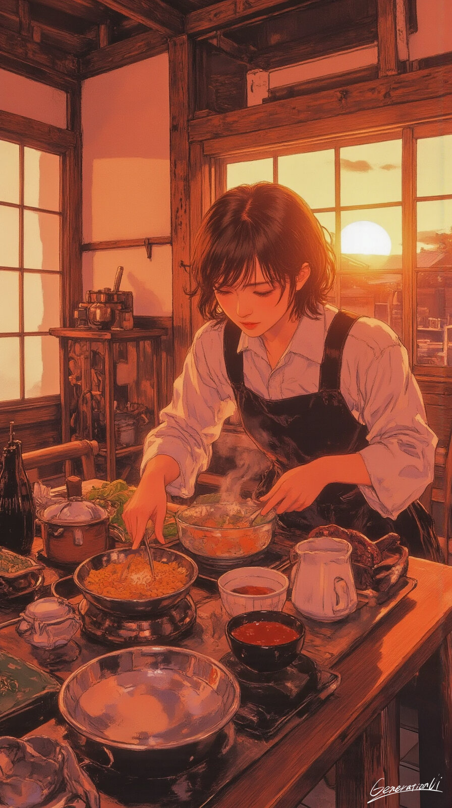 茜のレシピ帖/スマホ壁紙アーカイブ Generation UI 2025/9/26使用したAI FLUX.1 年齢制限 全年齢 いいね2 シェア #台所 #料理 #夕陽 #ノスタルジー #スマホ壁紙 #物語 #オリジナル 【茜のレシピ帖】そのノートは、祖母から母へ、母から彼女へと受け継がれてきた。ページの隙間には、すり切れた文字と一緒に、家族の夕暮れが挟まっている。初めてひとりでレシピをなぞった日、キッチンに射し込んだ夕陽は、まるで誰かがそっと背中を押してくれたかのようだった。茜色に染まった指先で、彼女は今日も一品を作る。味はまだ完璧じゃない。けれど、光はいつも優しく寄り添ってくれる。そのページに書かれるのは、次の世代へ贈る、小さな物語のはじまり。 プロンプト なし コメント 送信 Generation UI 2023年1月より活動開始 293投稿0フォロー17フォロワー ✨心ときめくスマホ壁紙をAIイラストでお届けします✨ 眺めているだけで、ふと気持ちが動くようなものを目指しています💕 【受賞歴】 ・世界最大級の AI画像生成プラットフォーム Civitai 主催の国際コンテストで受賞 (グレートハロウィンコンテスト2025Gothic Glamour画像部門1位https://civitai.com/articles/22348) フォローする 他の作品 全てを見る レンガ色の午後、風がやさしく通り抜ける街/スマホ壁紙アーカイブ 世界がオレンジに染まるとき/スマホ壁紙アーカイブ ボトルの中を走る小さな鉄道 / スマホ壁紙アーカイブ リビングに舞い降りた空のワンダーランド/スマホ壁紙アーカイブ 灰色の世界でひとつ息をする/スマホ壁紙アーカイブ 荷物より大きな夢を抱えて/スマホ壁紙アーカイブ 極赤の世界にひとつの祈り/スマホ壁紙アーカイブ 石橋のアーチが描く秋の交響曲/スマホ壁紙アーカイブ この雨を切り裂け!/スマホ壁紙アーカイブ 美しき弓、咲き乱れる世界/スマホ壁紙アーカイブ 貴方と過ごす幸せテーブル/スマホ壁紙アーカイブ 読書会はまだ始まらない/スマホ壁紙アーカイブ 物語が動き出す山岳メトロポリス/スマホ壁紙アーカイブ 戦火を纏うエレガンス/スマホ壁紙アーカイブ きのこライトが灯す秘密の谷/スマホ壁紙アーカイブ 木工職人の静かな集中/スマホ壁紙アーカイブ 書棚に挟まれた異世界行き/スマホ壁紙アーカイブ ノスタルジック秋の風景[5]/スマホ壁紙アーカイブ もっと見る