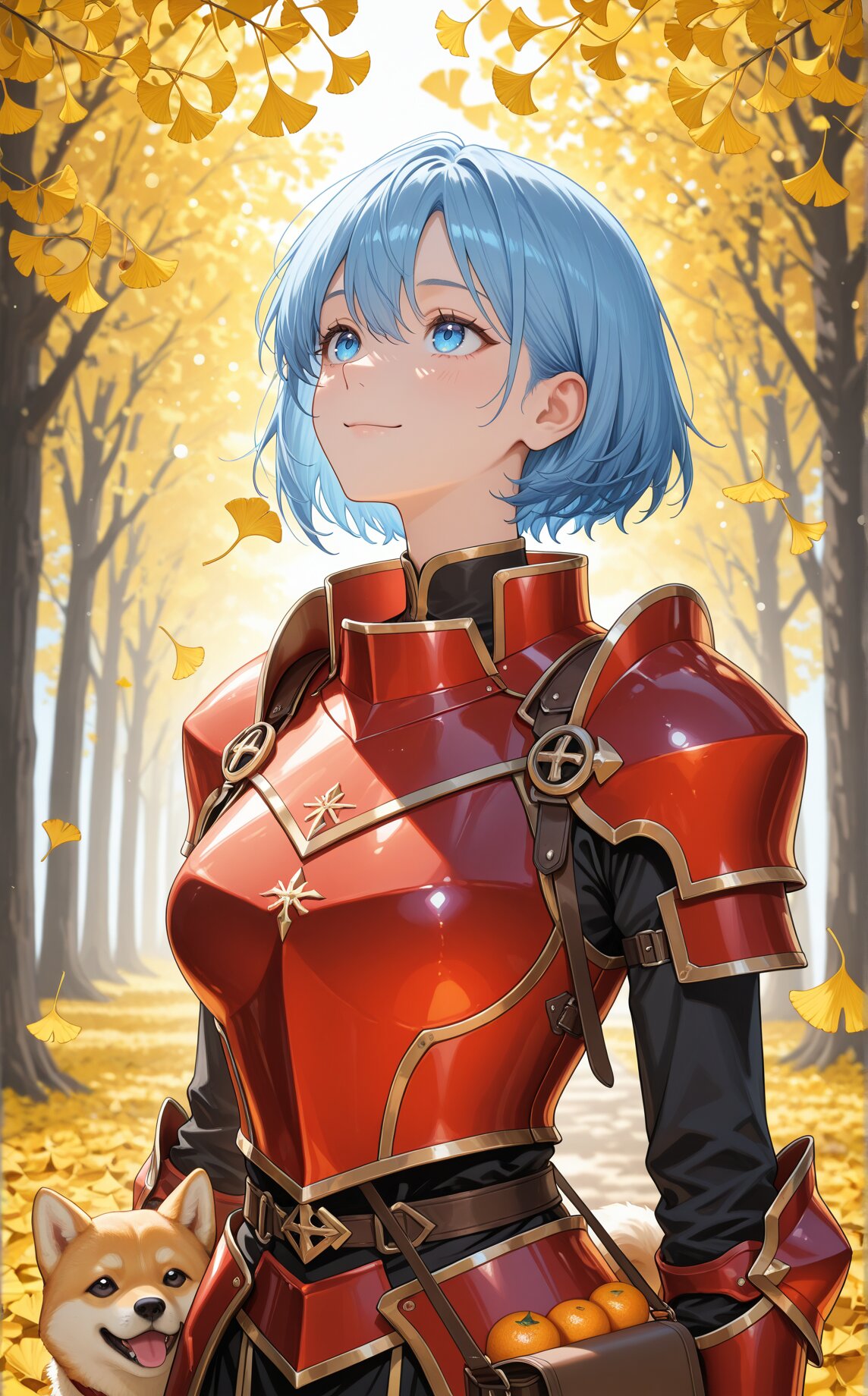 市場からの帰り道、彼女はイチョウ並木を歩いていた。
