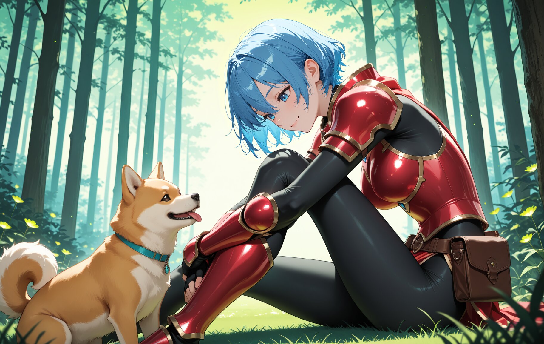 木漏れ日が揺れる静かな森の中、彼女は腰を下ろす。