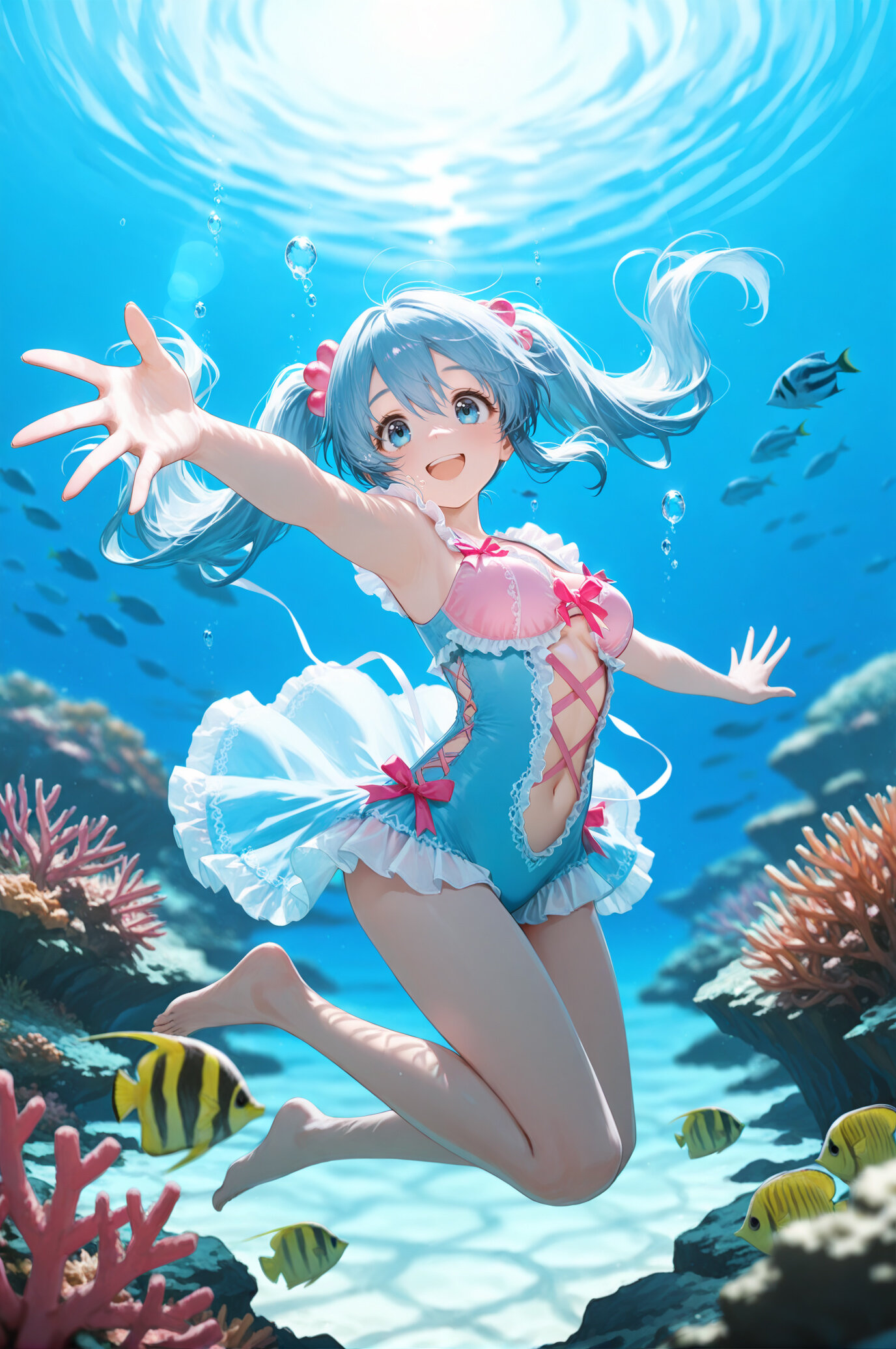 AIレインボーカーニバル企画「青色」用に作成したものの、水着デザインが全年齢の条件を満たすかどうか怪しかったので参考作品扱いで投稿します!(>_<)