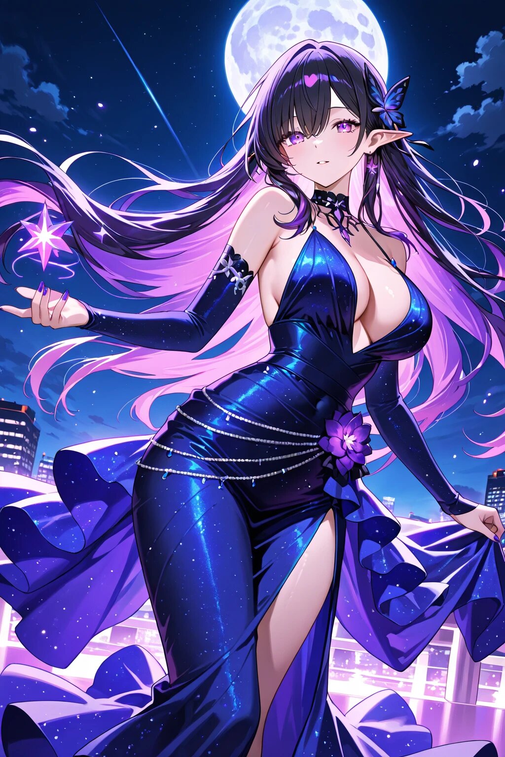 美しい紫髪のハーフエルフさん、青紫のドレスが素敵です✨