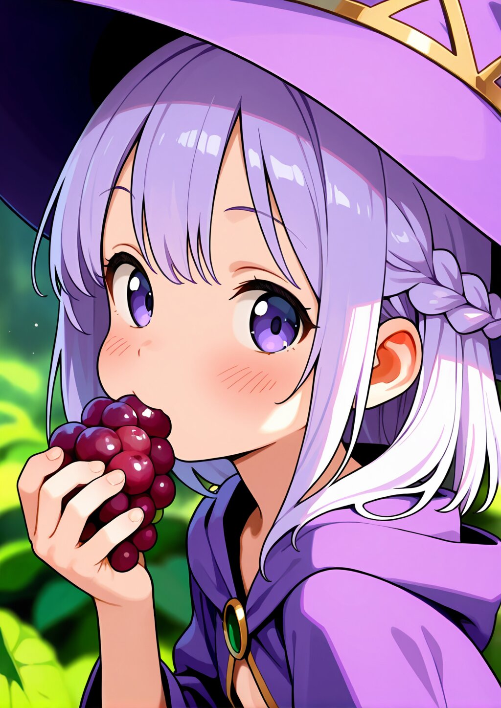 🍇を食べる紫の魔女っ娘さん、可愛いですね💜