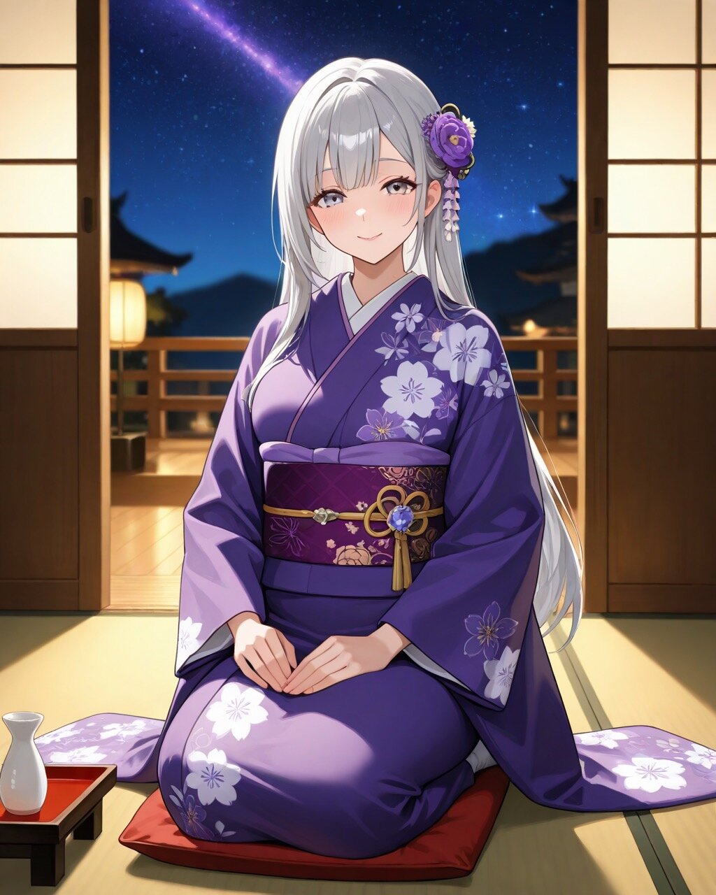銀髪に紫の髪飾りも良くお似合いで、凛とした佇まいに目を奪われます✨