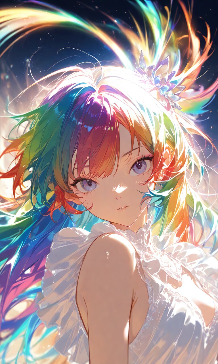 1 lady,((rainbow hair)), NineV,rainbow hair