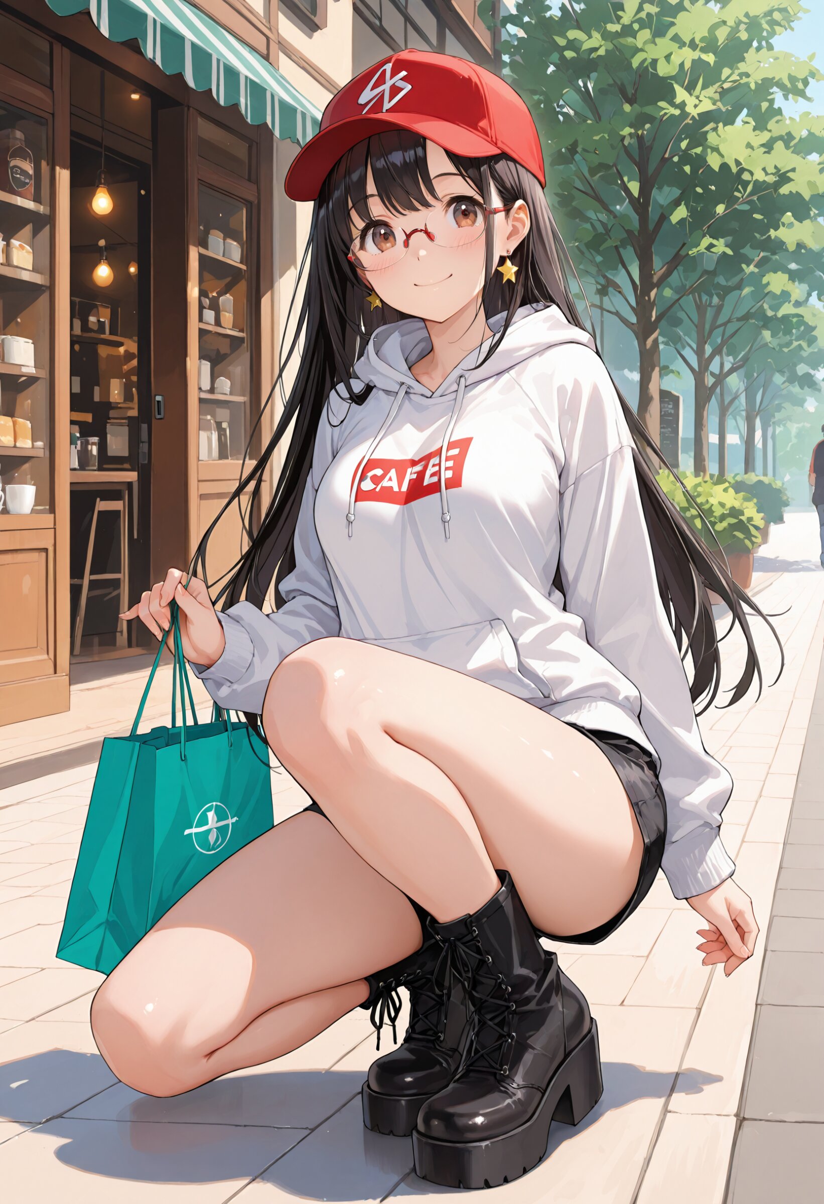 1girl, 17 years old, 155cm tall, brown eyes are shining and cute, black hair, long hair, extremely detailed neat hair,Straight hair, tareme, ((red semi-rimless eyewear:1.2)), star earrings, medium breasts, smile, blushful, happy, compassion, masterpiece, best quality, ultra-detailed, 4k, 8k, finely detailed, highres, anime, intricate, soft lighting, sharp focus, beautiful, detailed clear line art, detailed background,