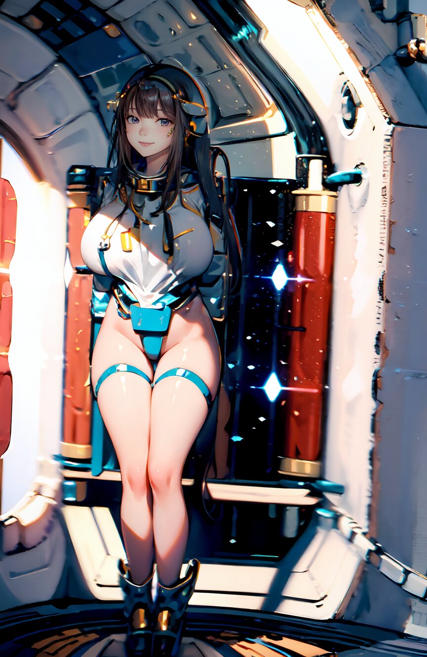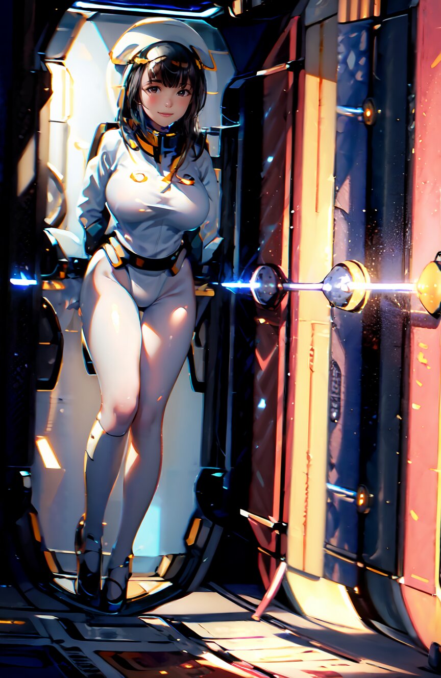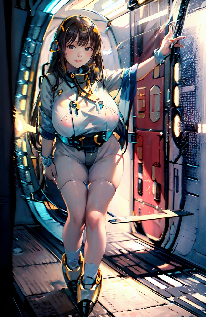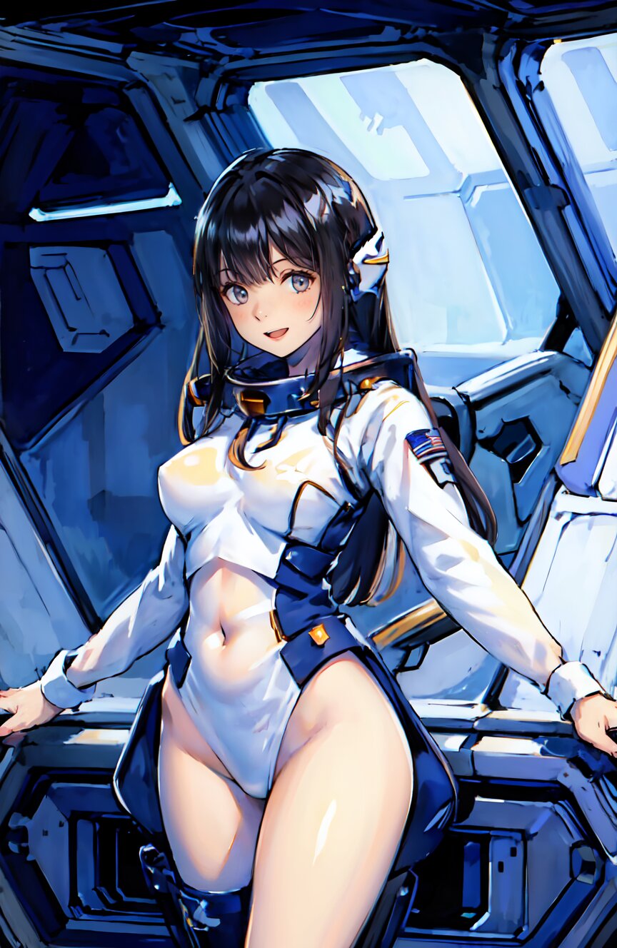 perfect anatomy, (masterpiece:1.3), (best quality:1.3), (ultra-detailed:1.2), 8K, HDR, (incredibly absurdres:1.2), (vibrant color:1.2), 1girl, solo, 16 years old, astronaut, (perfect body), plump, black hair, on back, (full body: 1.6), huge breasts, (an extremely delicate and beautiful hands), nails, beautiful detailed ears, (intricate detail), highly detailed, beautiful detailed eyes, beautiful detailed glow, detailed light, shiny skin, shiny hair, (inside of spaceship: 1.8), <lora:miori_v02:1>
