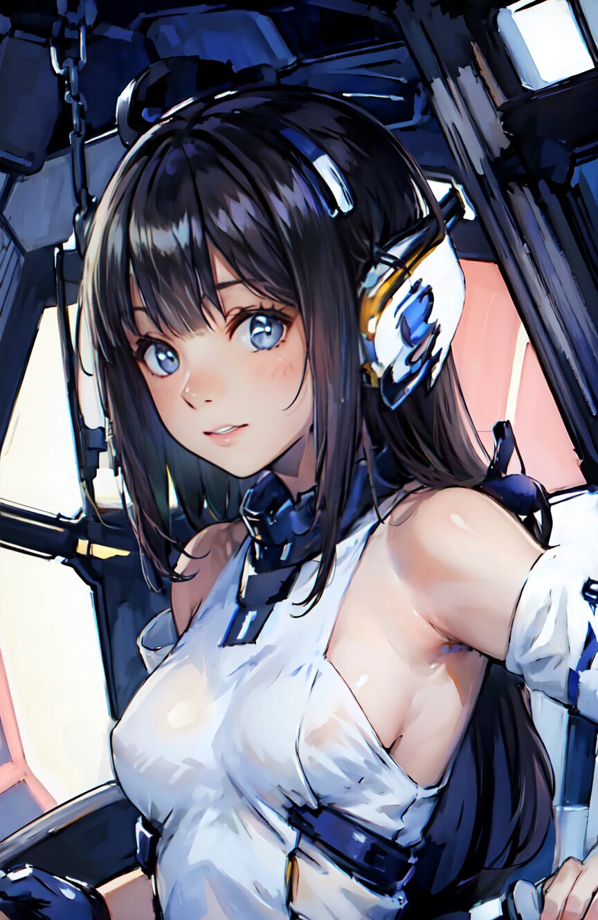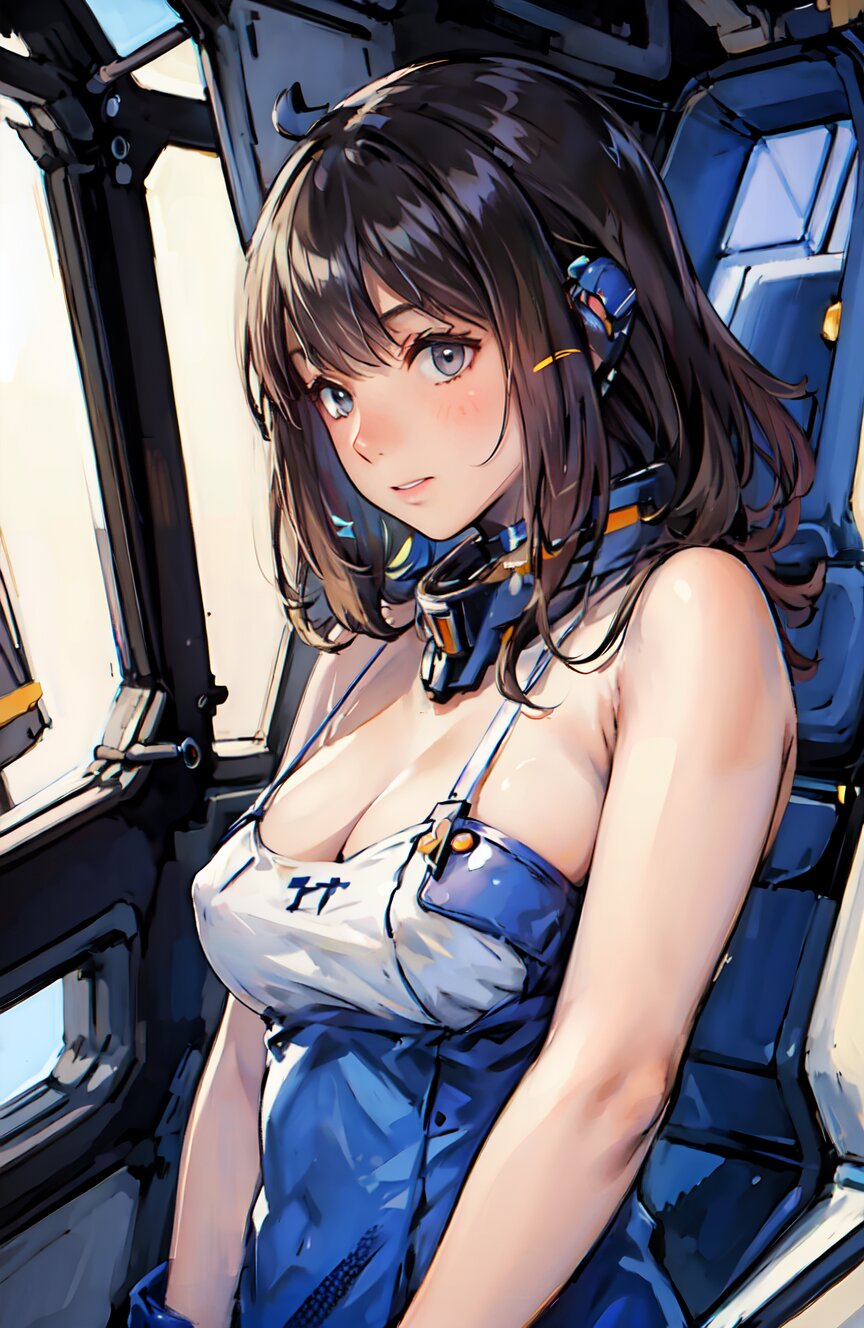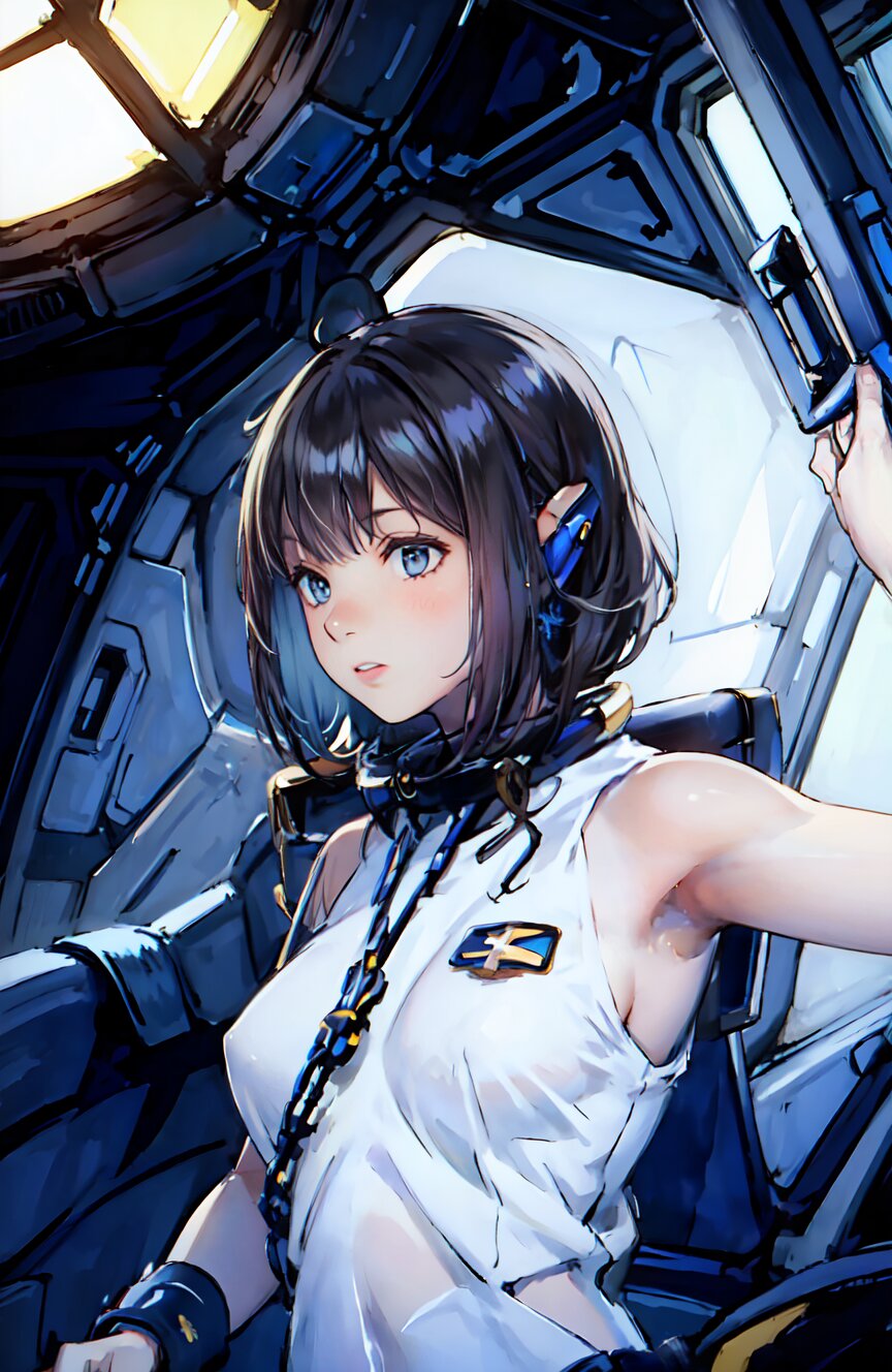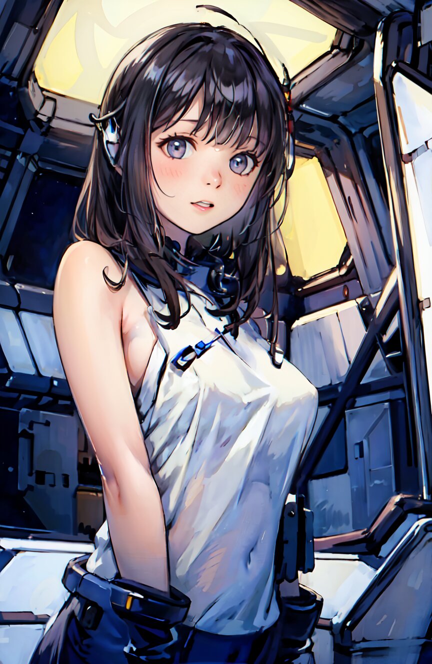 perfect anatomy, (masterpiece:1.3), (best quality:1.3), (ultra-detailed:1.2), 8K, HDR, (incredibly absurdres:1.2), (vibrant color:1.2), 1girl, solo, 16 years old, astronaut, (perfect body), plump, black hair, on back, (upper body: 1.6), huge breasts, (an extremely delicate and beautiful hands), nails, beautiful detailed ears, (intricate detail), highly detailed, beautiful detailed eyes, beautiful detailed glow, detailed light, shiny skin, shiny hair, (inside of spaceship: 1.8), <lora:miori_v02:1>