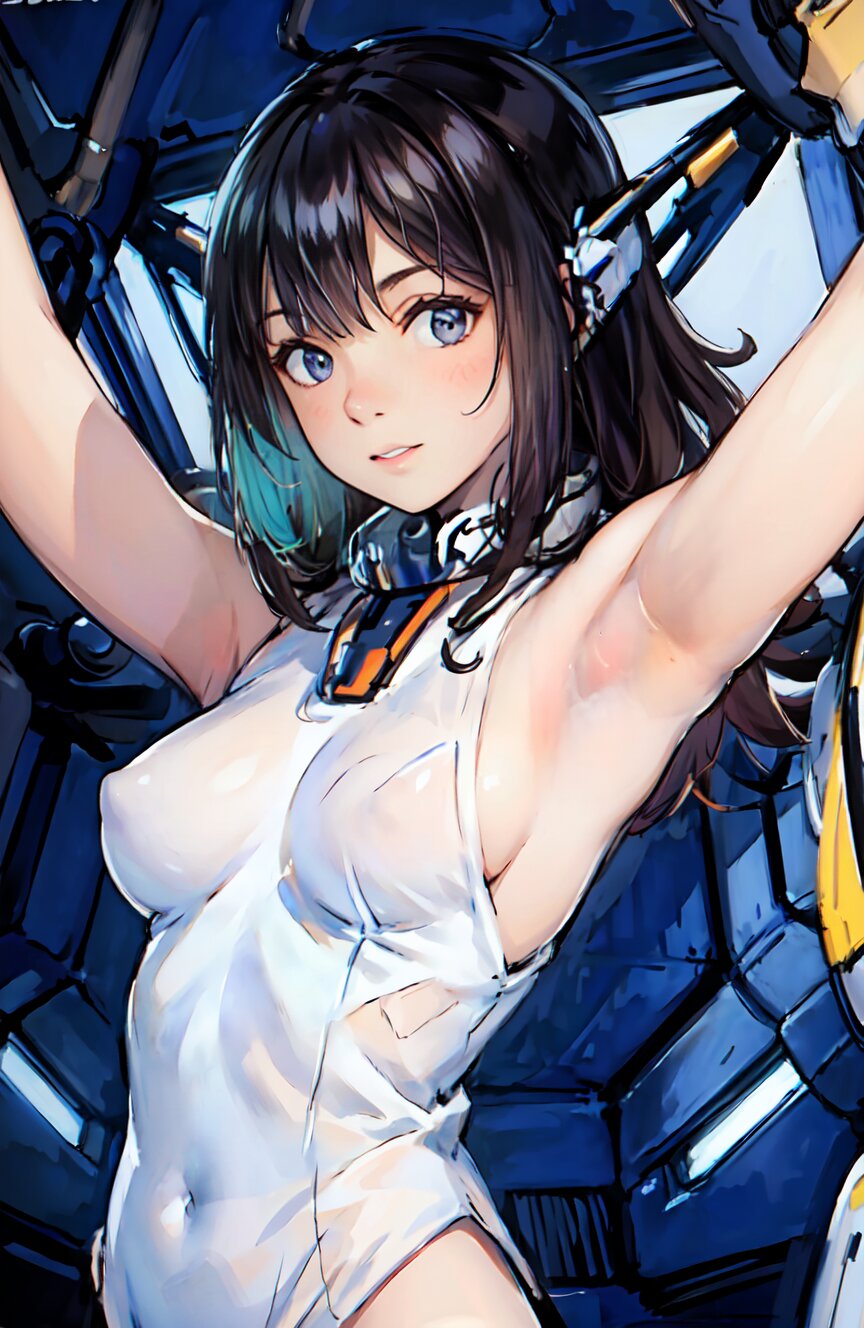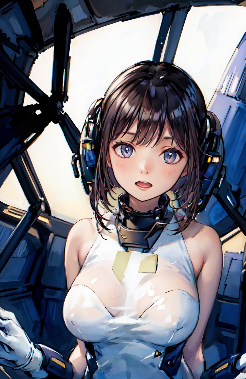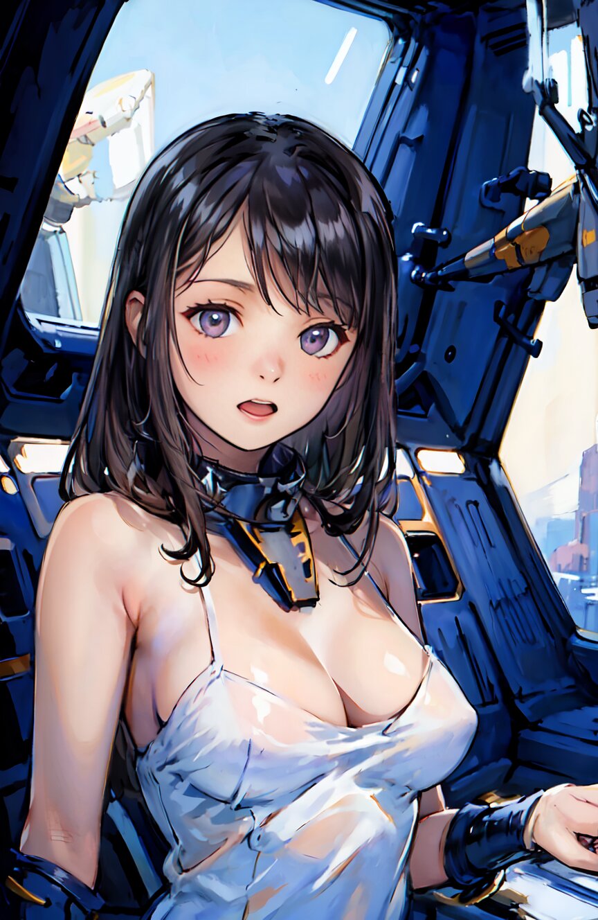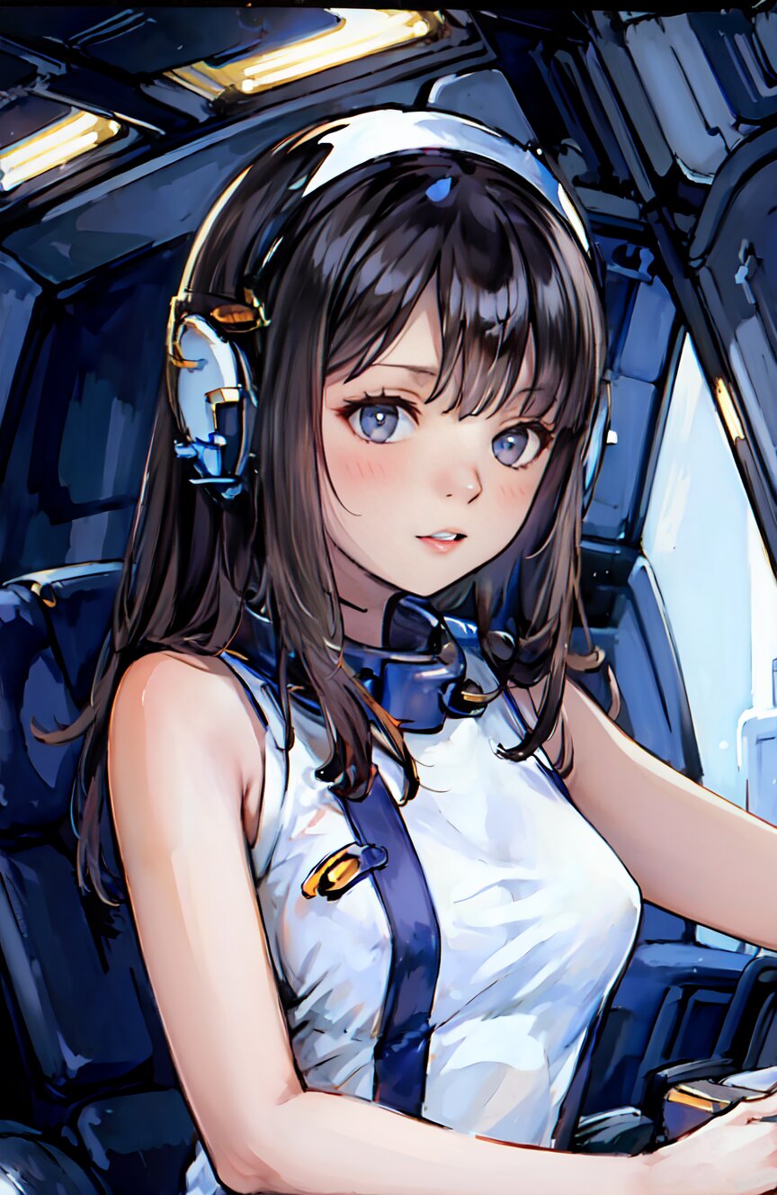 perfect anatomy, (masterpiece:1.3), (best quality:1.3), (ultra-detailed:1.2), 8K, HDR, (incredibly absurdres:1.2), (vibrant color:1.2), 1girl, solo, 16 years old, astronaut, (perfect body), plump, black hair, on back, (upper body: 1.6), huge breasts, (an extremely delicate and beautiful hands), nails, beautiful detailed ears, (intricate detail), highly detailed, beautiful detailed eyes, beautiful detailed glow, detailed light, shiny skin, shiny hair, (inside of spaceship: 1.8), <lora:miori_v02:1>