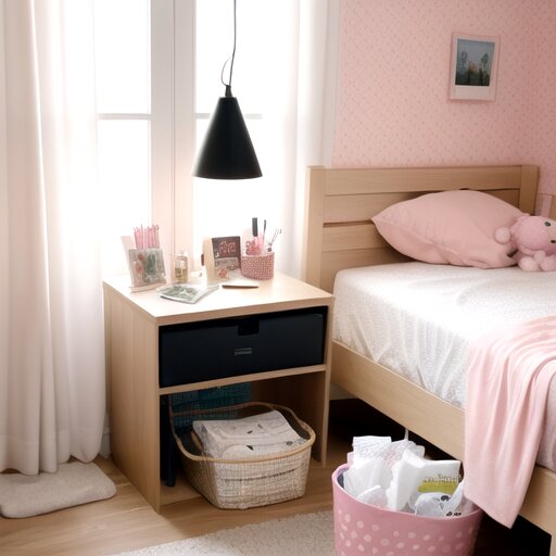 cozy girl's room, extremely cluttered with an overwhelming amount of menstrual products, Ultra-detailed 4K, realistic lighting. Three monitors neatly lined up on a desk, in front of a gaming chair. A cute bear plushie sits on the chair. A pink polka-dot bed with abundant sheets and blankets, curtains wide open to let in soft light. A Sanrio cow character-shaped alarm clock on the nightstand. A pale pink lampshade hanging from the ceiling. Storage boxes and baskets overflowing with makeup tools and accessories, manga magazines featuring reader models on the cover, fashion magazines also with reader models, books on cosmetics, and astrology books. A three-sided mirror on the desk, surrounded by basic skincare products, room diffusers, and aroma diffusers. Numerous cushions scattered on the bed and gaming chair. Romantic indirect lighting from a bedside lamp and fairy lights draped on the wall. Various potted plants and dried flowers. Photos and posters adorning the walls. An accessory stand overflowing with jewelry. A small waste bin, charging cables and power cords tangled nearby. A closet filled with clothes and underwear. A designated spot for a smartphone and small beauty creams for hydration. Stacks of soft towels. Notebooks, pens, planners, and a diary. Clothes hangers. An favorite cup with a drink and a tissue box are on the nightstand. A small rug on the floor. TV remote control. Secret books and tools hidden under the bed. The floor is completely covered, almost impossible to step, with countless unopened and opened packages of menstrual pads (various sizes: day, night, slim), tampons (boxes and individual wrappers), panty liners, and feminine wipes. Boxes are stacked precariously high, individual wrappers spill from baskets, and soft pads are piled everywhere, creating a soft, colorful, and overwhelming landscape of hygiene products across every available surface and corner of the room, on the bed, on the desk, spilling from drawers and baskets.