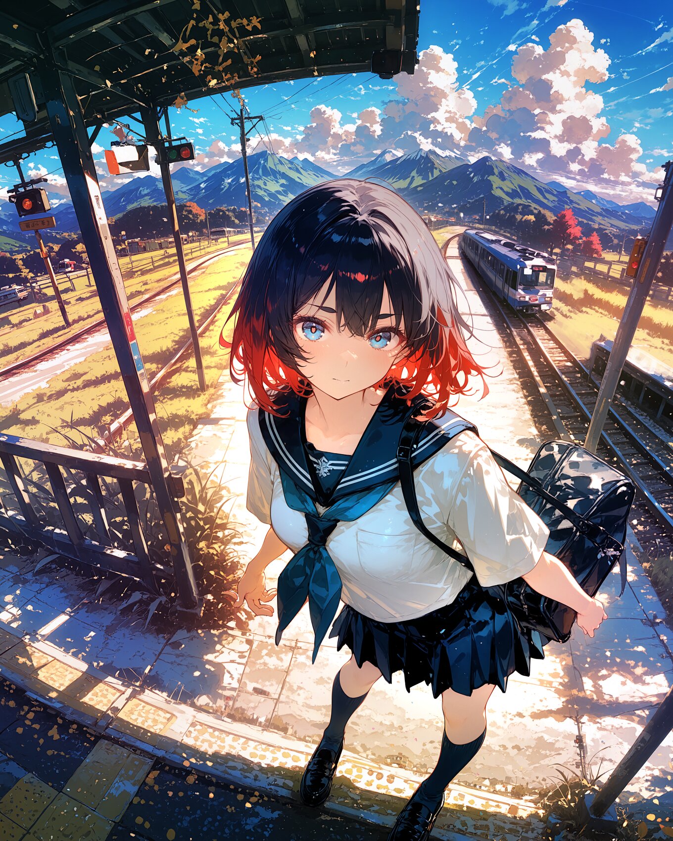 「……東京に行ったら、あたしのこと、忘れちゃうんでしょ」 九々@AI勉強中 2025/10/15使用したAI Stable Diffusion XL 年齢制限 全年齢 いいね5 シェア #女子高生 #田舎 プロンプト なし コメント 送信 九々@AI勉強中 2025年3月より活動開始 45投稿34フォロー33フォロワー グラフィッカー職 ComfyUIで出力し加筆修正した物を掲載しています。 まだまだ勉強中。 フォローする 他の作品 全てを見る 心も、この紅葉のように、赤く染まれたなら。 古き神は石となり、新しい神は、今、水浴びを終える。 一文字、一文字に、太古の海の匂いがする。 虹の歓迎。うん、この街に決めた! シャッターを切る。――青い世界から失われた色を与える。 海月の明かりに導かれ、魂は月へ還る。 今宵の祭りの主役は、水面に舞い降りた、一羽の虹。 一人は危険の匂いを嗅ぎつけ、一人は危険そのものになる。 「楽しい」って、きっと、こんな色で、こんな形。 空と海、花霞の特等席。 猫と、色の大行進。 この小さく灯す火が、いつか大きな炎になる未来。 364日、抑え込んだ狂気が、今、溢れ出る。 トリック・オア・ベット? 一人一人の「好き」が、この世界の材料となる。 街の喧騒は、最高の読書BGM いちばん偉いのは、隣で羽を休めてる、この子。 「ねえ、あたしの『好き』に、ついてこれる?」 もっと見る