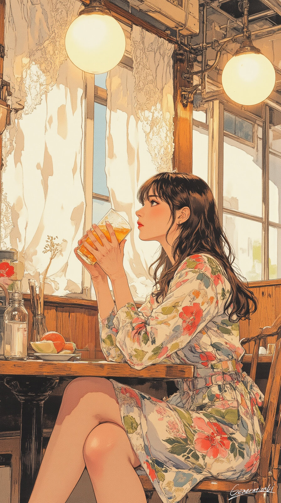 カフェの窓辺で/スマホ壁紙アーカイブ Generation UI 2025/10/17使用したAI FLUX.1 年齢制限 全年齢 いいね3 シェア #喫茶店 #レトロカフェ #フローラルワンピース #自然光ポートレート #スマホ壁紙 #物語 #オリジナル 【カフェの窓辺で】カーテン越しに差し込む光が、テーブルの木目をやさしくなぞっている。私は窓辺の席に座り、冷たいグラスを両手で包んだ。何も考えずに、ただこの瞬間を味わう。氷が溶ける音も、外のざわめきも、全部が心地いいBGMになる。別に誰かを待ってるわけじゃないんだけど。スマホも開かず、時計も見ない。今日は私と光と、少しの果実だけの午後。この場所だけ、世界がちょっとだけ静かになってくれる。そんな気がした。 プロンプト なし コメント 送信 Generation UI 2023年1月より活動開始 293投稿0フォロー17フォロワー ✨心ときめくスマホ壁紙をAIイラストでお届けします✨ 眺めているだけで、ふと気持ちが動くようなものを目指しています💕 【受賞歴】 ・世界最大級の AI画像生成プラットフォーム Civitai 主催の国際コンテストで受賞 (グレートハロウィンコンテスト2025Gothic Glamour画像部門1位https://civitai.com/articles/22348) フォローする 他の作品 全てを見る レンガ色の午後、風がやさしく通り抜ける街/スマホ壁紙アーカイブ 世界がオレンジに染まるとき/スマホ壁紙アーカイブ ボトルの中を走る小さな鉄道 / スマホ壁紙アーカイブ リビングに舞い降りた空のワンダーランド/スマホ壁紙アーカイブ 灰色の世界でひとつ息をする/スマホ壁紙アーカイブ 荷物より大きな夢を抱えて/スマホ壁紙アーカイブ 極赤の世界にひとつの祈り/スマホ壁紙アーカイブ 石橋のアーチが描く秋の交響曲/スマホ壁紙アーカイブ この雨を切り裂け!/スマホ壁紙アーカイブ 美しき弓、咲き乱れる世界/スマホ壁紙アーカイブ 貴方と過ごす幸せテーブル/スマホ壁紙アーカイブ 読書会はまだ始まらない/スマホ壁紙アーカイブ 物語が動き出す山岳メトロポリス/スマホ壁紙アーカイブ 戦火を纏うエレガンス/スマホ壁紙アーカイブ きのこライトが灯す秘密の谷/スマホ壁紙アーカイブ 木工職人の静かな集中/スマホ壁紙アーカイブ 書棚に挟まれた異世界行き/スマホ壁紙アーカイブ ノスタルジック秋の風景[5]/スマホ壁紙アーカイブ もっと見る