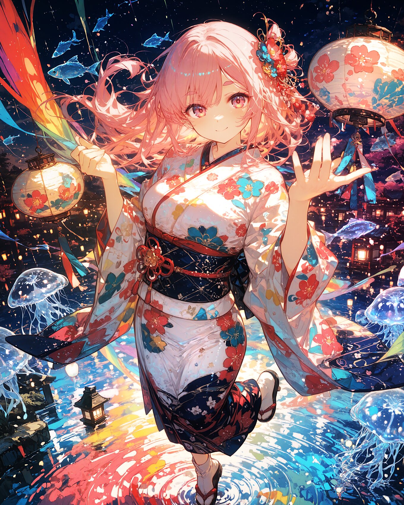 星と魚が空で交わる、ただ一夜の祭り。 九々@AI勉強中 2025/10/17使用したAI Stable Diffusion XL 年齢制限 全年齢 いいね8 シェア #和風ファンタジー #祭り プロンプト なし コメント 送信 九々@AI勉強中 2025年3月より活動開始 45投稿34フォロー33フォロワー グラフィッカー職 ComfyUIで出力し加筆修正した物を掲載しています。 まだまだ勉強中。 フォローする 他の作品 全てを見る 心も、この紅葉のように、赤く染まれたなら。 古き神は石となり、新しい神は、今、水浴びを終える。 一文字、一文字に、太古の海の匂いがする。 虹の歓迎。うん、この街に決めた! シャッターを切る。――青い世界から失われた色を与える。 海月の明かりに導かれ、魂は月へ還る。 今宵の祭りの主役は、水面に舞い降りた、一羽の虹。 一人は危険の匂いを嗅ぎつけ、一人は危険そのものになる。 「楽しい」って、きっと、こんな色で、こんな形。 空と海、花霞の特等席。 猫と、色の大行進。 この小さく灯す火が、いつか大きな炎になる未来。 364日、抑え込んだ狂気が、今、溢れ出る。 トリック・オア・ベット? 一人一人の「好き」が、この世界の材料となる。 街の喧騒は、最高の読書BGM いちばん偉いのは、隣で羽を休めてる、この子。 「ねえ、あたしの『好き』に、ついてこれる?」 もっと見る