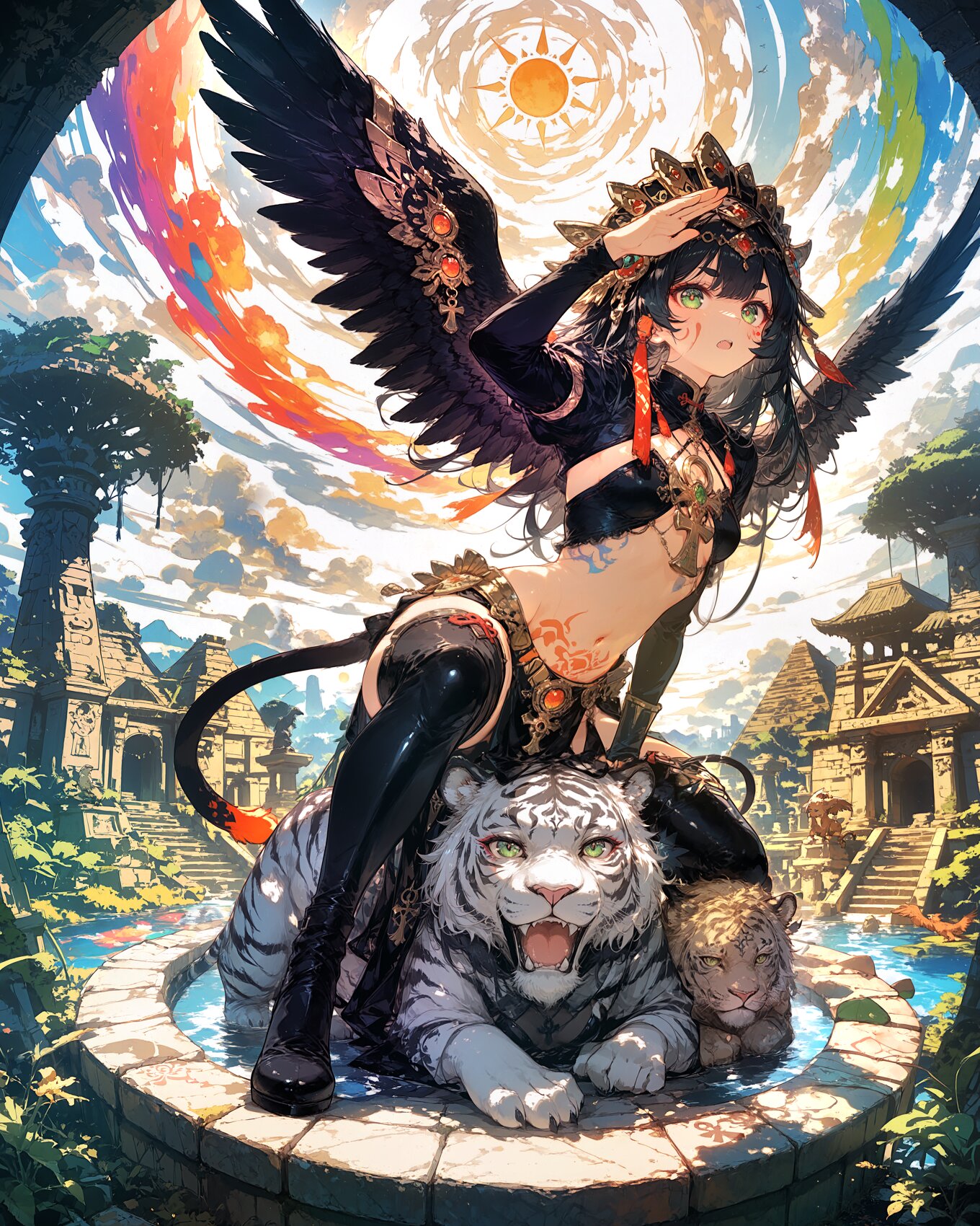 異常なし。――次の千年もまた、見張り続ける。 九々@AI勉強中 2025/10/18使用したAI Stable Diffusion XL 年齢制限 全年齢 いいね9 シェア #白虎 #遺跡 #翼 #太陽 #斥候 プロンプト なし コメント 送信 九々@AI勉強中 2025年3月より活動開始 45投稿34フォロー33フォロワー グラフィッカー職 ComfyUIで出力し加筆修正した物を掲載しています。 まだまだ勉強中。 フォローする 他の作品 全てを見る 心も、この紅葉のように、赤く染まれたなら。 古き神は石となり、新しい神は、今、水浴びを終える。 一文字、一文字に、太古の海の匂いがする。 虹の歓迎。うん、この街に決めた! シャッターを切る。――青い世界から失われた色を与える。 海月の明かりに導かれ、魂は月へ還る。 今宵の祭りの主役は、水面に舞い降りた、一羽の虹。 一人は危険の匂いを嗅ぎつけ、一人は危険そのものになる。 「楽しい」って、きっと、こんな色で、こんな形。 空と海、花霞の特等席。 猫と、色の大行進。 この小さく灯す火が、いつか大きな炎になる未来。 364日、抑え込んだ狂気が、今、溢れ出る。 トリック・オア・ベット? 一人一人の「好き」が、この世界の材料となる。 街の喧騒は、最高の読書BGM いちばん偉いのは、隣で羽を休めてる、この子。 「ねえ、あたしの『好き』に、ついてこれる?」 もっと見る