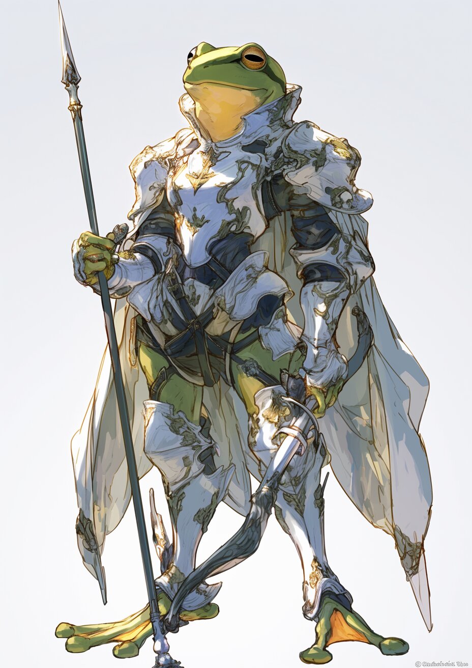 カエルの騎士 Dr. Eam 2025/10/19使用したAI Midjourney 年齢制限 全年齢 いいね2 シェア #カエル #騎士 #ファンタジー #童話 #中世 #ヨーロッパ #北欧神話 プロンプト なし コメント 送信 Dr. Eam 2025年5月より活動開始 90投稿10フォロー10フォロワー 2025年5月からAIイラスト開始 まだ良くわかりません Xては ピーチ で活動中 フォローする 他の作品 全てを見る 君臨 海賊船 ドラゴン ショック トリックスター Secred places 斬 Summon the dragon Leftist insane わーっ! 再生 ソリテュード 天馬飛翔 礼拝 熊の受難 バニーガール 小さな秋 Mr. Jack-o-lantern もっと見る