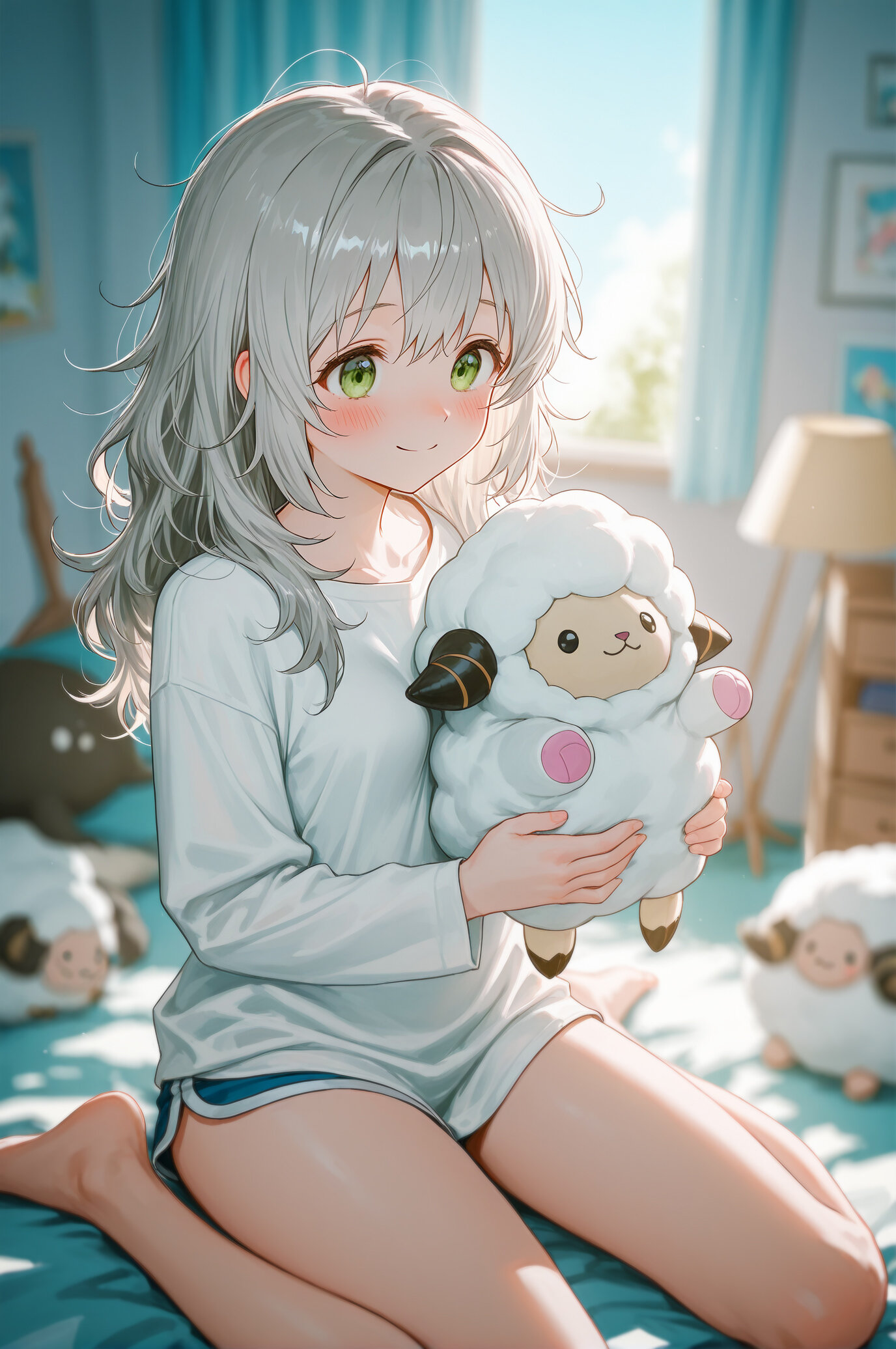 モフモフぬいぐるみ🐏を愛でるおとうふちゃんを生成してみました(*´ω`*)🙌