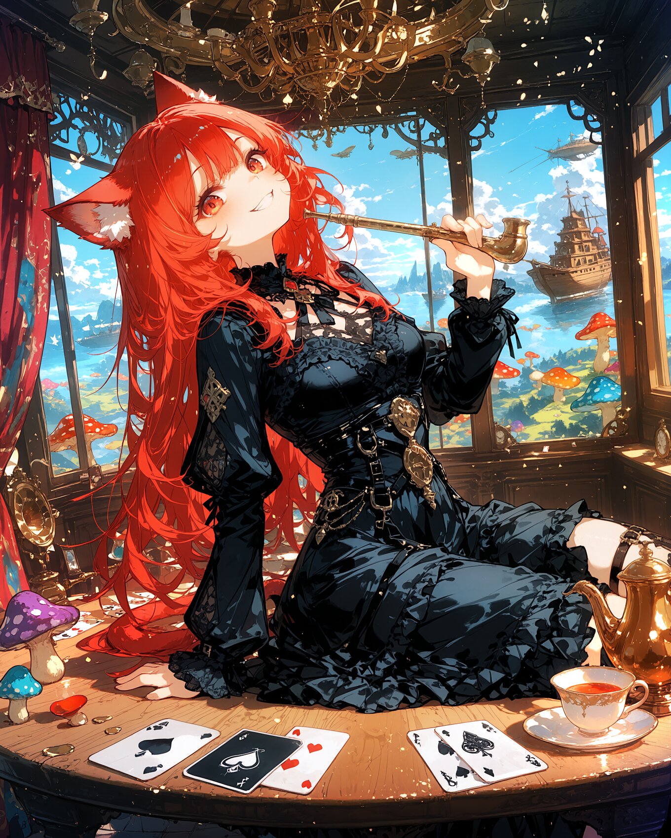 「イカサマ? 褒め言葉よね」 九々@AI勉強中 2025/10/22使用したAI Stable Diffusion XL 年齢制限 全年齢 いいね9 シェア プロンプト なし コメント 送信 九々@AI勉強中 2025年3月より活動開始 45投稿34フォロー33フォロワー グラフィッカー職 ComfyUIで出力し加筆修正した物を掲載しています。 まだまだ勉強中。 フォローする 他の作品 全てを見る 心も、この紅葉のように、赤く染まれたなら。 古き神は石となり、新しい神は、今、水浴びを終える。 一文字、一文字に、太古の海の匂いがする。 虹の歓迎。うん、この街に決めた! シャッターを切る。――青い世界から失われた色を与える。 海月の明かりに導かれ、魂は月へ還る。 今宵の祭りの主役は、水面に舞い降りた、一羽の虹。 一人は危険の匂いを嗅ぎつけ、一人は危険そのものになる。 「楽しい」って、きっと、こんな色で、こんな形。 空と海、花霞の特等席。 猫と、色の大行進。 この小さく灯す火が、いつか大きな炎になる未来。 364日、抑え込んだ狂気が、今、溢れ出る。 トリック・オア・ベット? 一人一人の「好き」が、この世界の材料となる。 街の喧騒は、最高の読書BGM いちばん偉いのは、隣で羽を休めてる、この子。 「ねえ、あたしの『好き』に、ついてこれる?」 もっと見る