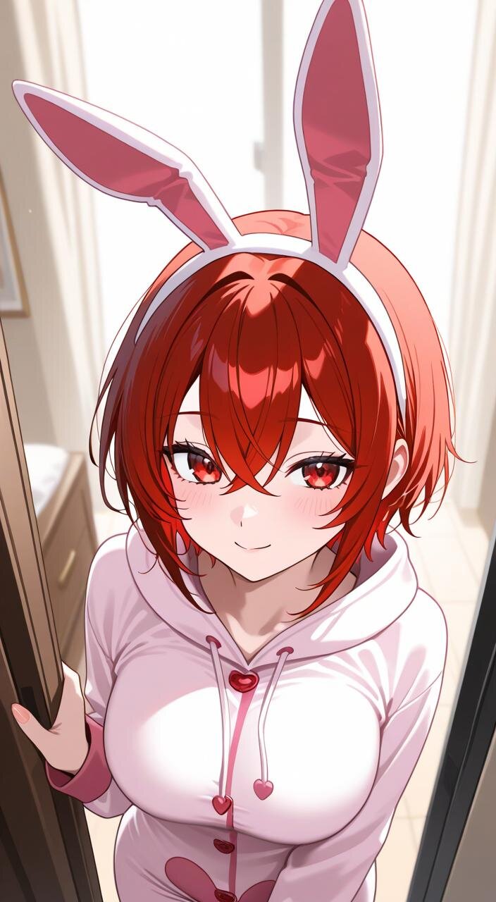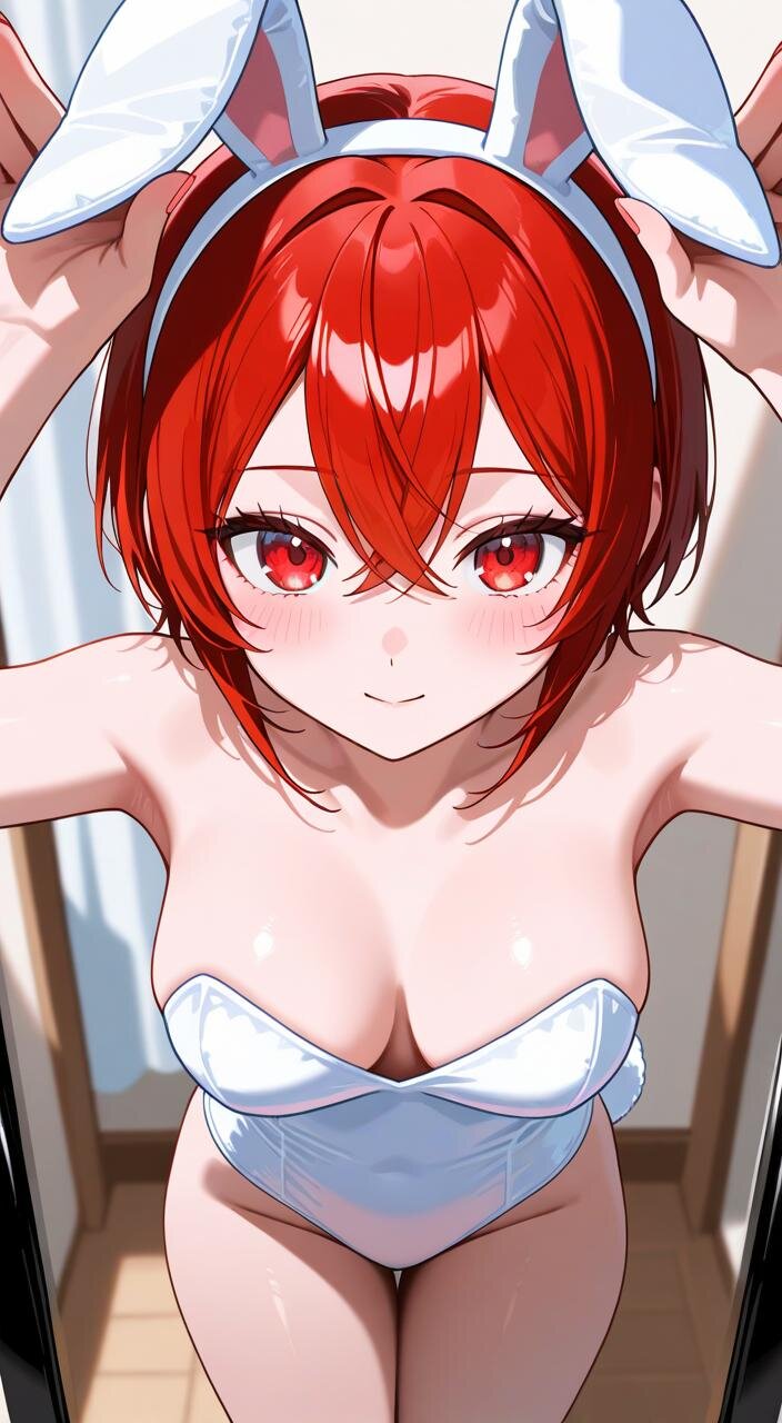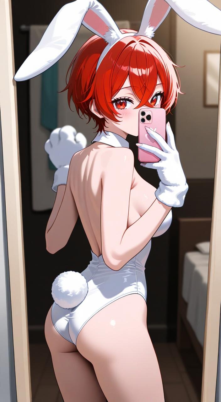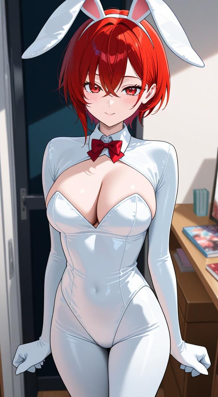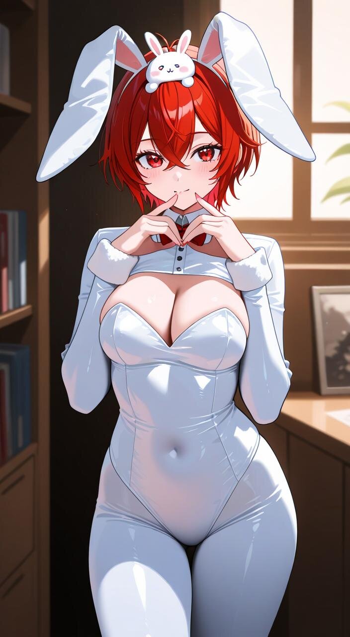 白く輝くウサギの耳と、リボンのついた胸元――いつもの真面目な彼女とは違う、愛らしくも大胆な姿。