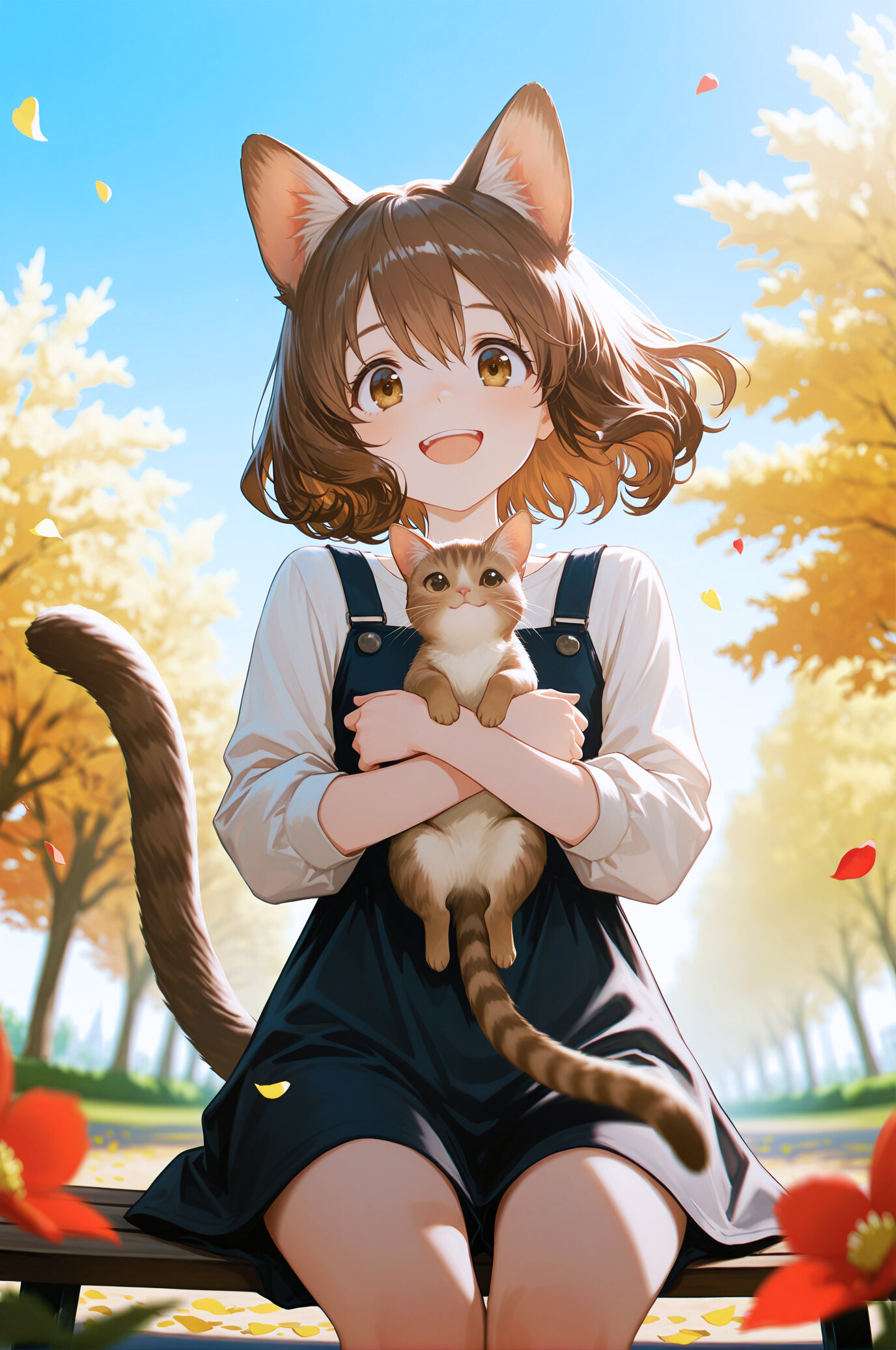 愛猫と公園にお出かけするミミちゃんをイメージして生成しました!🥰🙌