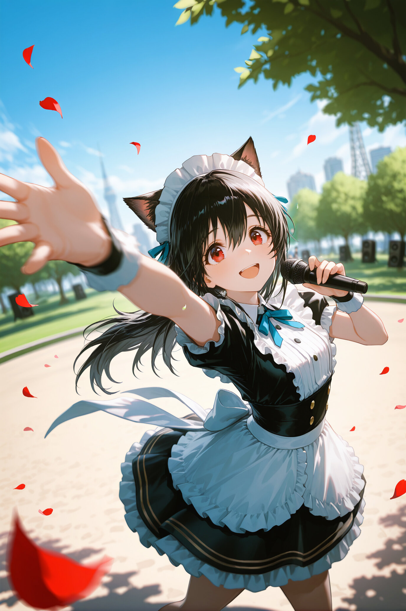 メイド衣装に身を包んでストリートライブに精を出すなるちゃんをイメージして生成してみました(*´▽`*)💗