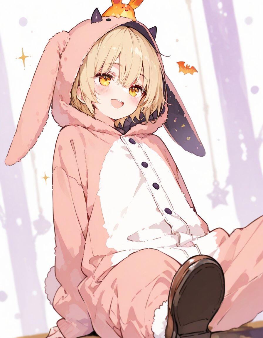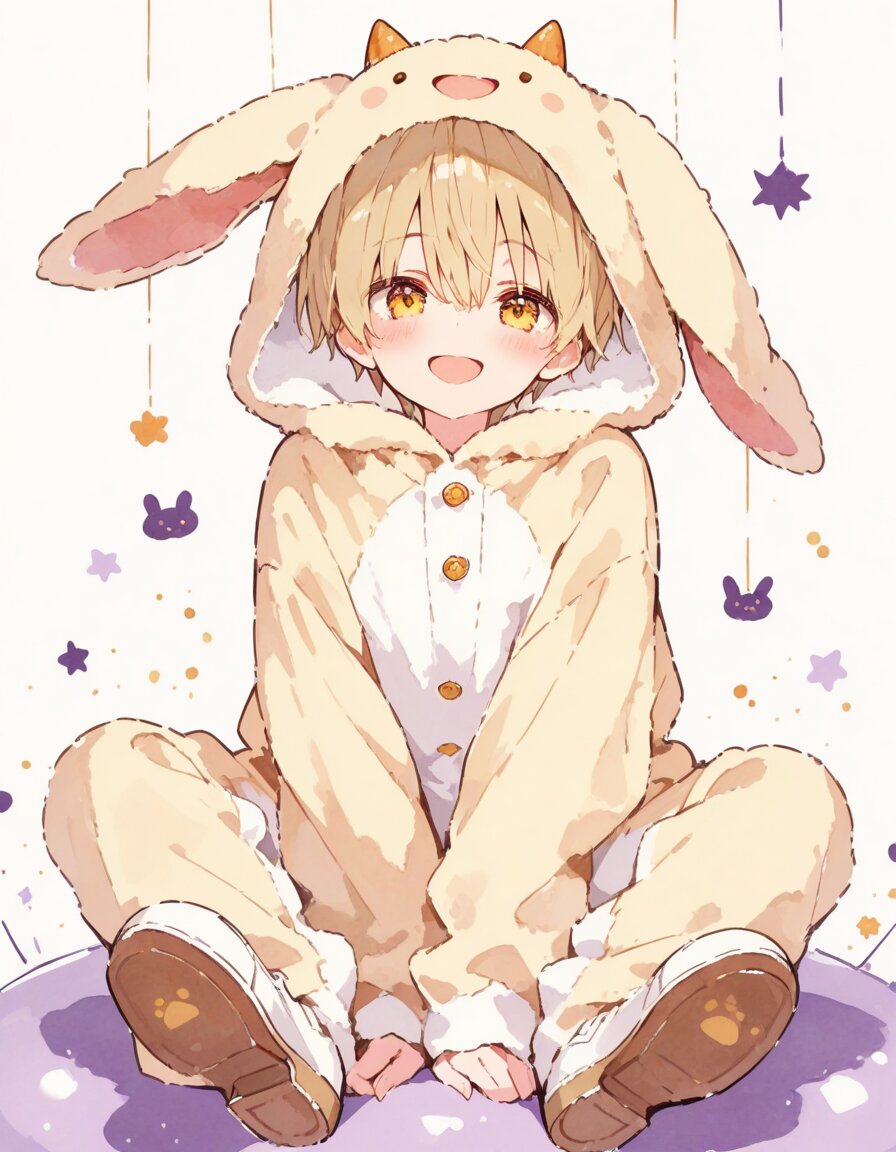 もこもこのうさぎの着ぐるみ姿が、天使のように可愛くて癒やされます…!😭🙏 垂れたお耳とふんわりとした色使いがたまらなくキュートです。満面の笑顔と、キラキラの瞳がとっても魅力的!背景のモチーフも愛らしくて、すべてが最高に可愛いです!🐰✨