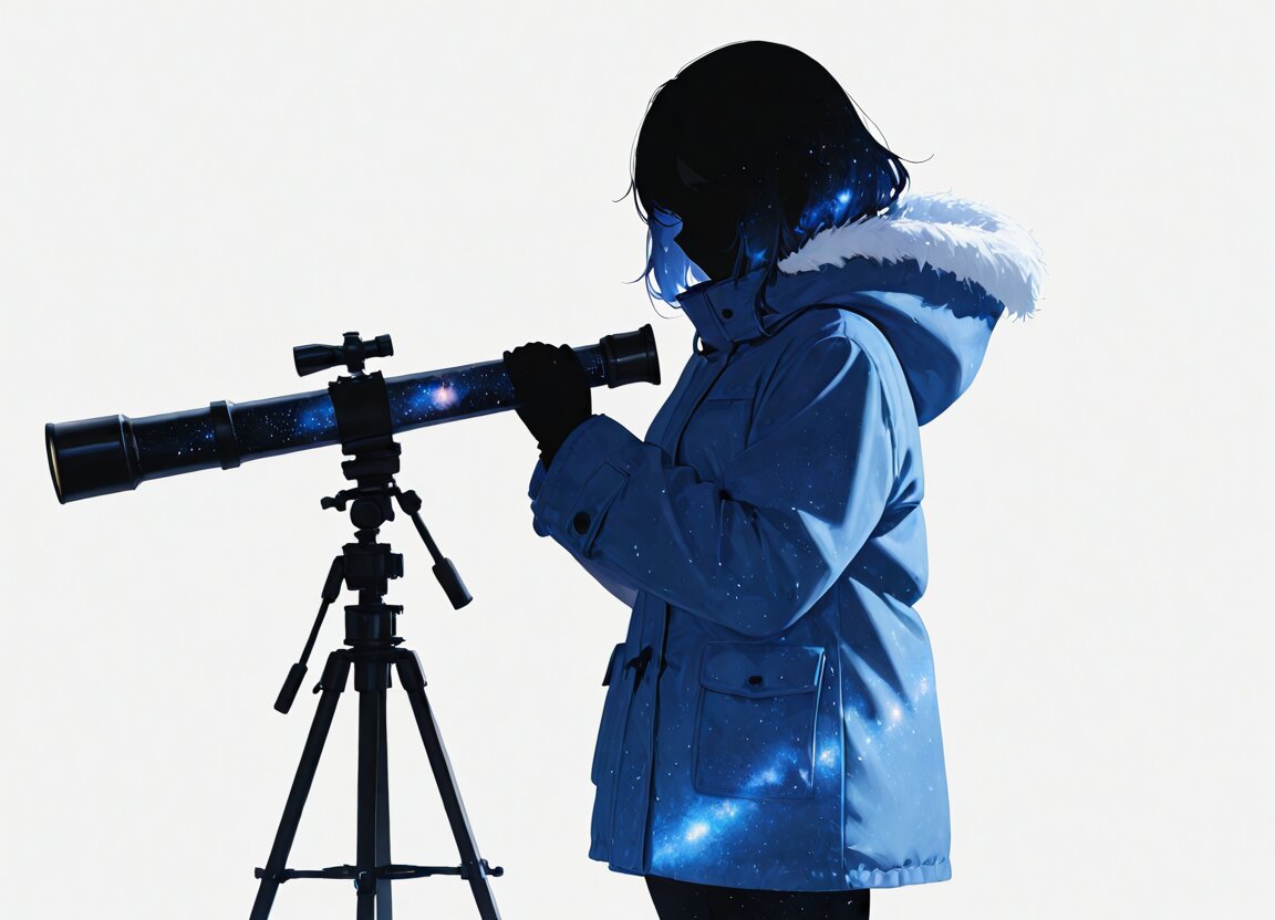 general, simple background,white background,cowboy shot,telescope, (silhouette:1.3),1girl,winter clothes, milky way galaxy,, appropriate posture,appropriate configuration,ideal ratio body proportions,perfect anatomy, <lora:Fixhands_anime_bdsqlsz_V1:1>, masterpiece,best quality,newest,absurdres,highres,ultra high res,8K UHD,hyper-detailed,