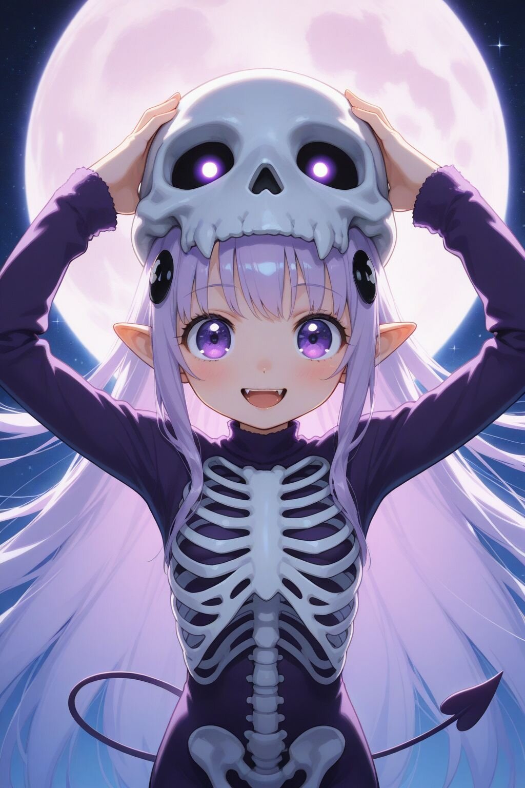 バックのお月様に頭の骸骨くんの目が光って、ハロウィンの神秘さが出ていますね…!(*´ω`*)