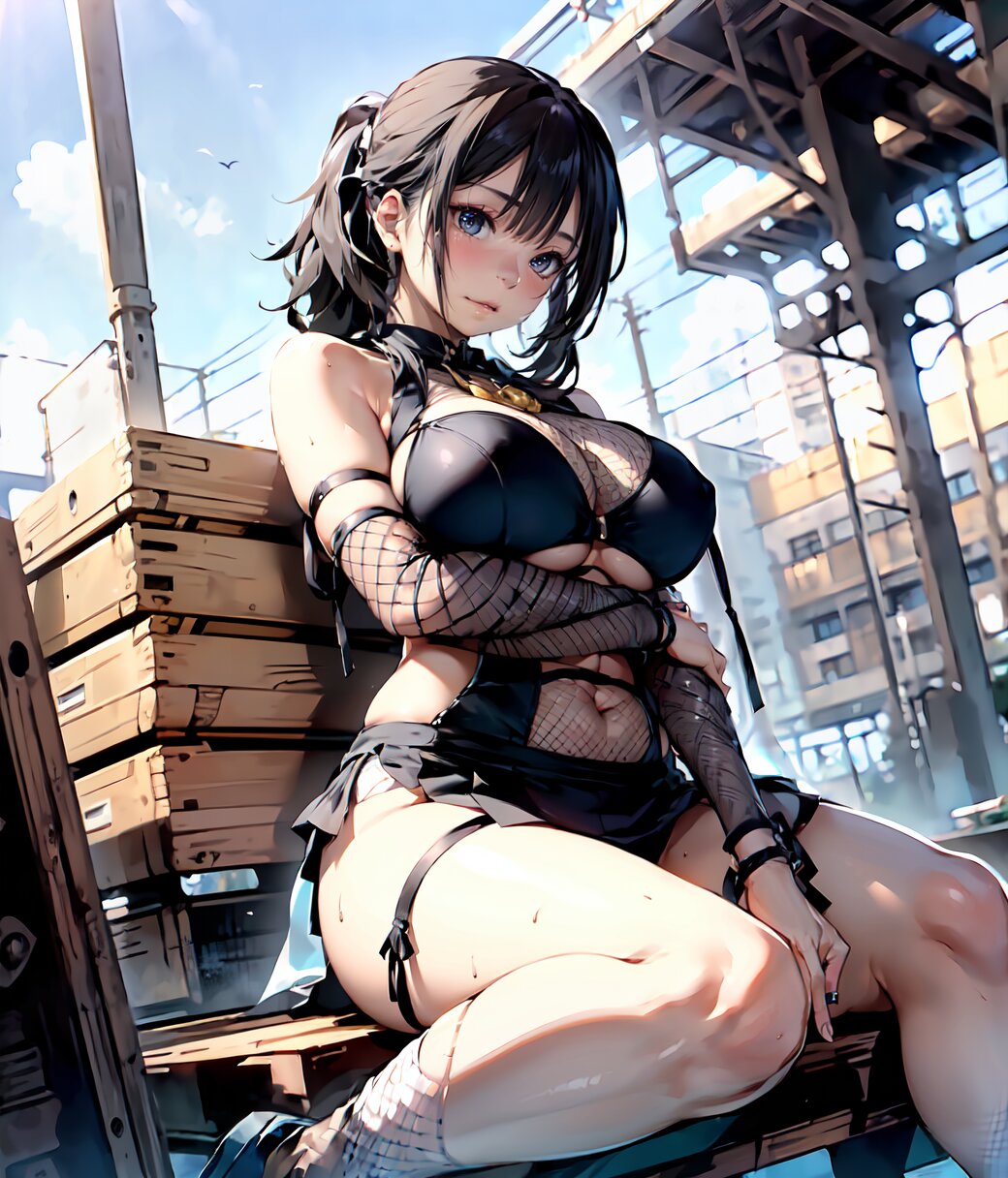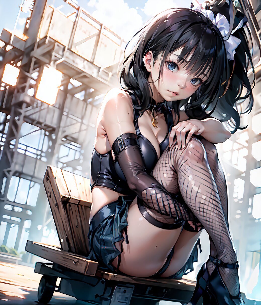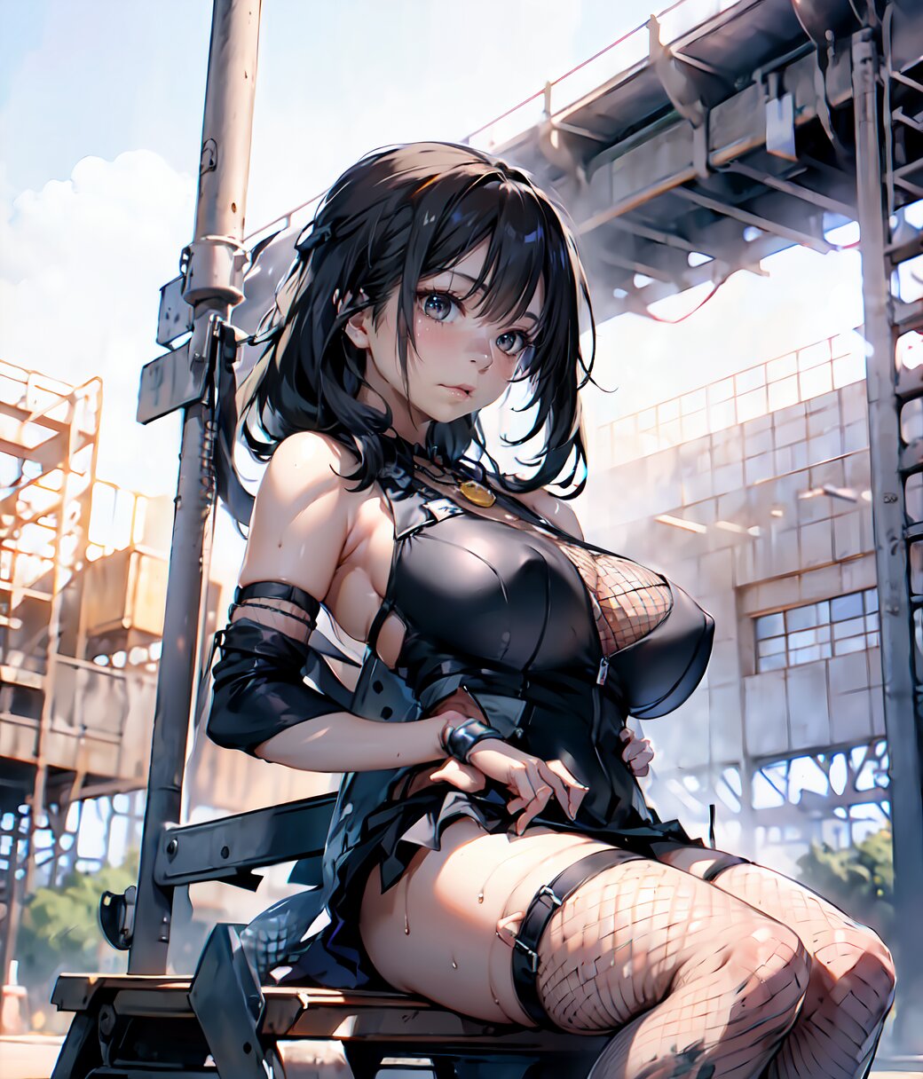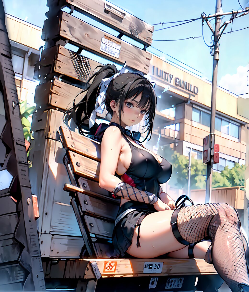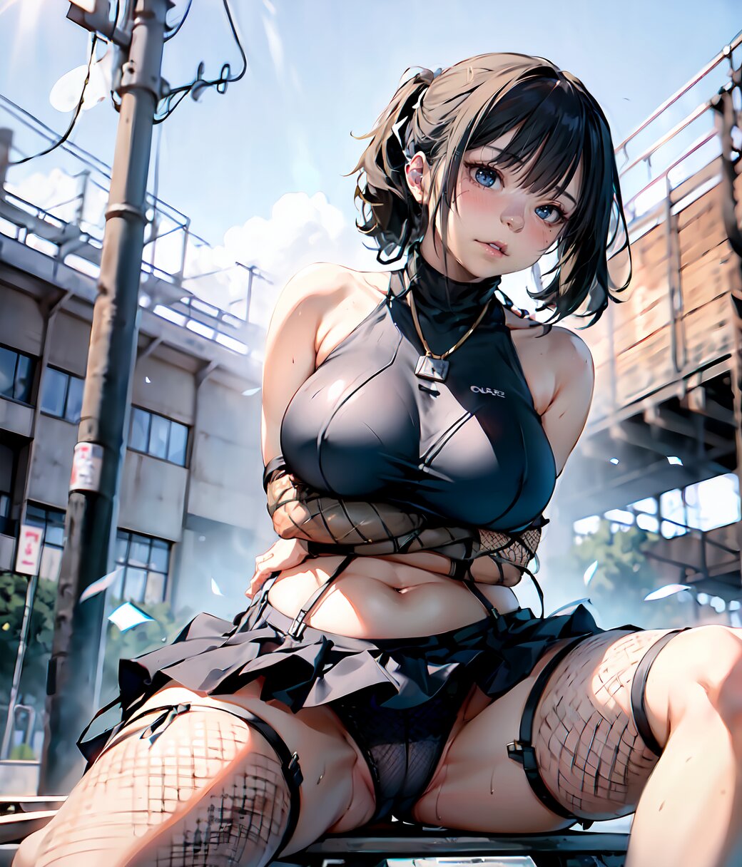 (8k, Ultra Hi-Res, top quality, Masterpiece: 1.2), RAW photo, (Photorealistic: 1.4), professional lighting, (from below: 1.2), full body, 1girl, 18 years old, (((huge breasts))), bare shoulders, gold necklace, (((detailed Top And Ruched Bodycon Mini Skirt, fishnet black thighs, black sexy panties))), show breasts, curvy, depth of field, cinematic lighting, (physical-based rendering), (sexy posing, sitting on load, leaning back: 1.4), in the summer beach, <lora:Uta_v01:1>