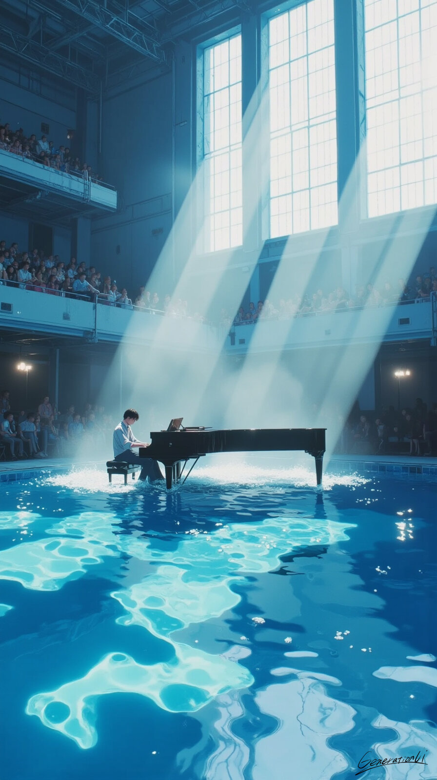 水の上のラプソディ/スマホ壁紙アーカイブ Generation UI 2025/10/30使用したAI FLUX.1 年齢制限 全年齢 いいね3 シェア #屋内プール #グランドピアノ #演奏会 #独奏 #スマホ壁紙 #物語 #オリジナル 【水の上のラプソディ】午後の光がプールに差し込むころ、彼は音符を水に浮かべるように弾き始めた。鍵盤を打つたび、波紋が広がり、空気も観客も静かに震えた。グランドピアノは水面に浮かびながらも、まるで舞台の上のように凛としていた。それは演奏というより、ひとつの祈りだった。光、音、水──すべてが一つになったその瞬間、世界は息を飲み、時は静かに止まっていた。まるで水の上のラプソディであるかのように。 プロンプト なし コメント 送信 Generation UI 2023年1月より活動開始 293投稿0フォロー17フォロワー ✨心ときめくスマホ壁紙をAIイラストでお届けします✨ 眺めているだけで、ふと気持ちが動くようなものを目指しています💕 【受賞歴】 ・世界最大級の AI画像生成プラットフォーム Civitai 主催の国際コンテストで受賞 (グレートハロウィンコンテスト2025Gothic Glamour画像部門1位https://civitai.com/articles/22348) フォローする 他の作品 全てを見る レンガ色の午後、風がやさしく通り抜ける街/スマホ壁紙アーカイブ 世界がオレンジに染まるとき/スマホ壁紙アーカイブ ボトルの中を走る小さな鉄道 / スマホ壁紙アーカイブ リビングに舞い降りた空のワンダーランド/スマホ壁紙アーカイブ 灰色の世界でひとつ息をする/スマホ壁紙アーカイブ 荷物より大きな夢を抱えて/スマホ壁紙アーカイブ 極赤の世界にひとつの祈り/スマホ壁紙アーカイブ 石橋のアーチが描く秋の交響曲/スマホ壁紙アーカイブ この雨を切り裂け!/スマホ壁紙アーカイブ 美しき弓、咲き乱れる世界/スマホ壁紙アーカイブ 貴方と過ごす幸せテーブル/スマホ壁紙アーカイブ 読書会はまだ始まらない/スマホ壁紙アーカイブ 物語が動き出す山岳メトロポリス/スマホ壁紙アーカイブ 戦火を纏うエレガンス/スマホ壁紙アーカイブ きのこライトが灯す秘密の谷/スマホ壁紙アーカイブ 木工職人の静かな集中/スマホ壁紙アーカイブ 書棚に挟まれた異世界行き/スマホ壁紙アーカイブ ノスタルジック秋の風景[5]/スマホ壁紙アーカイブ もっと見る