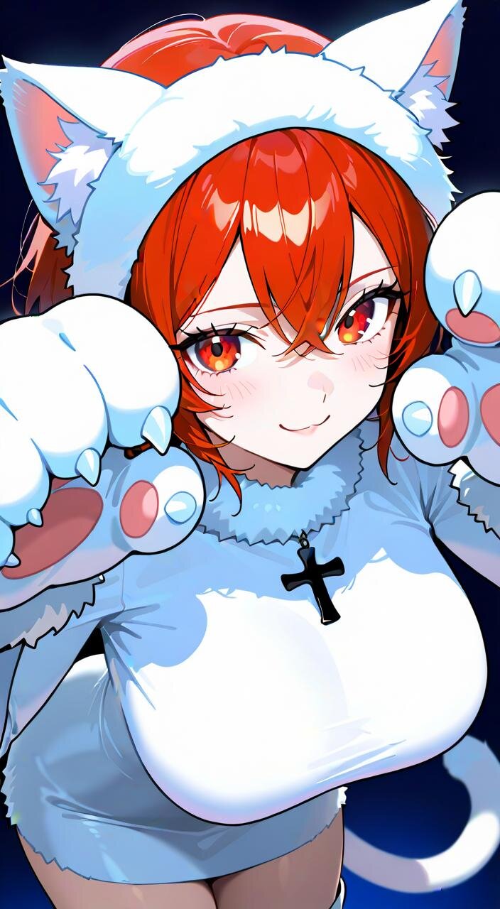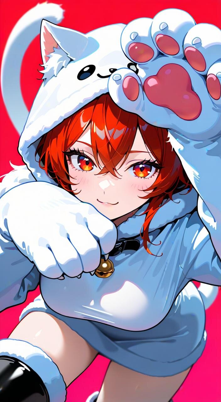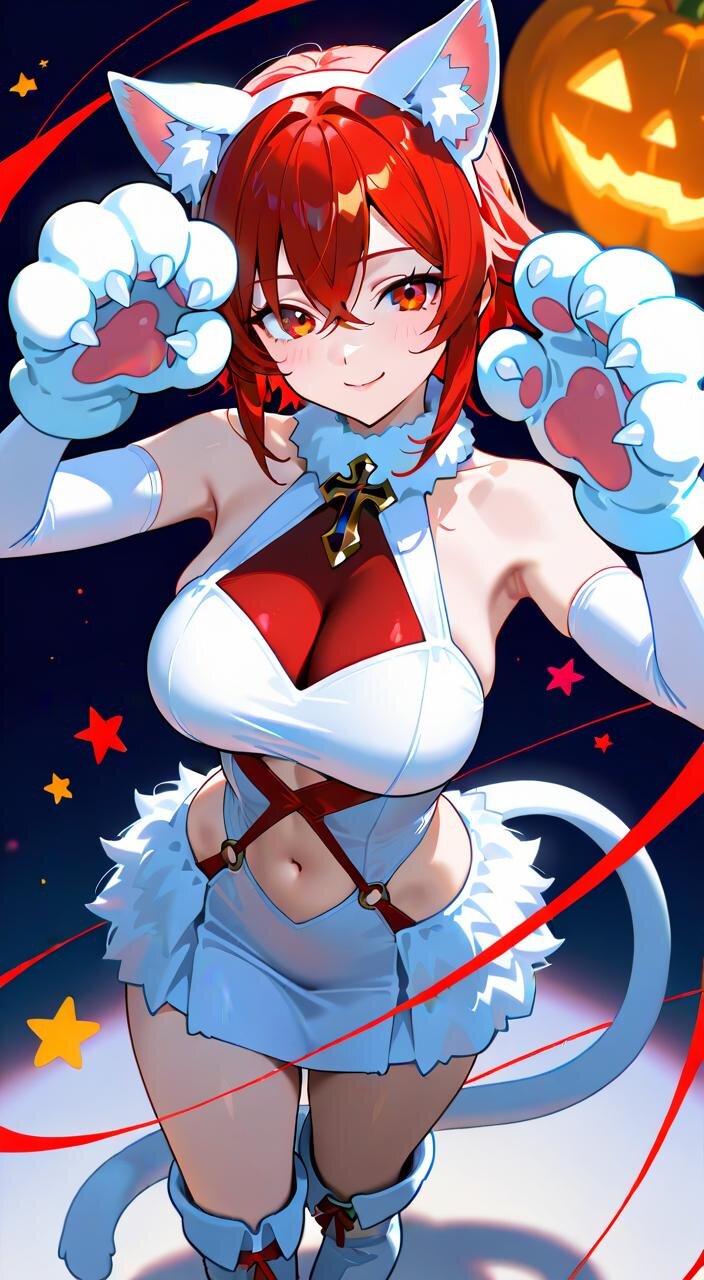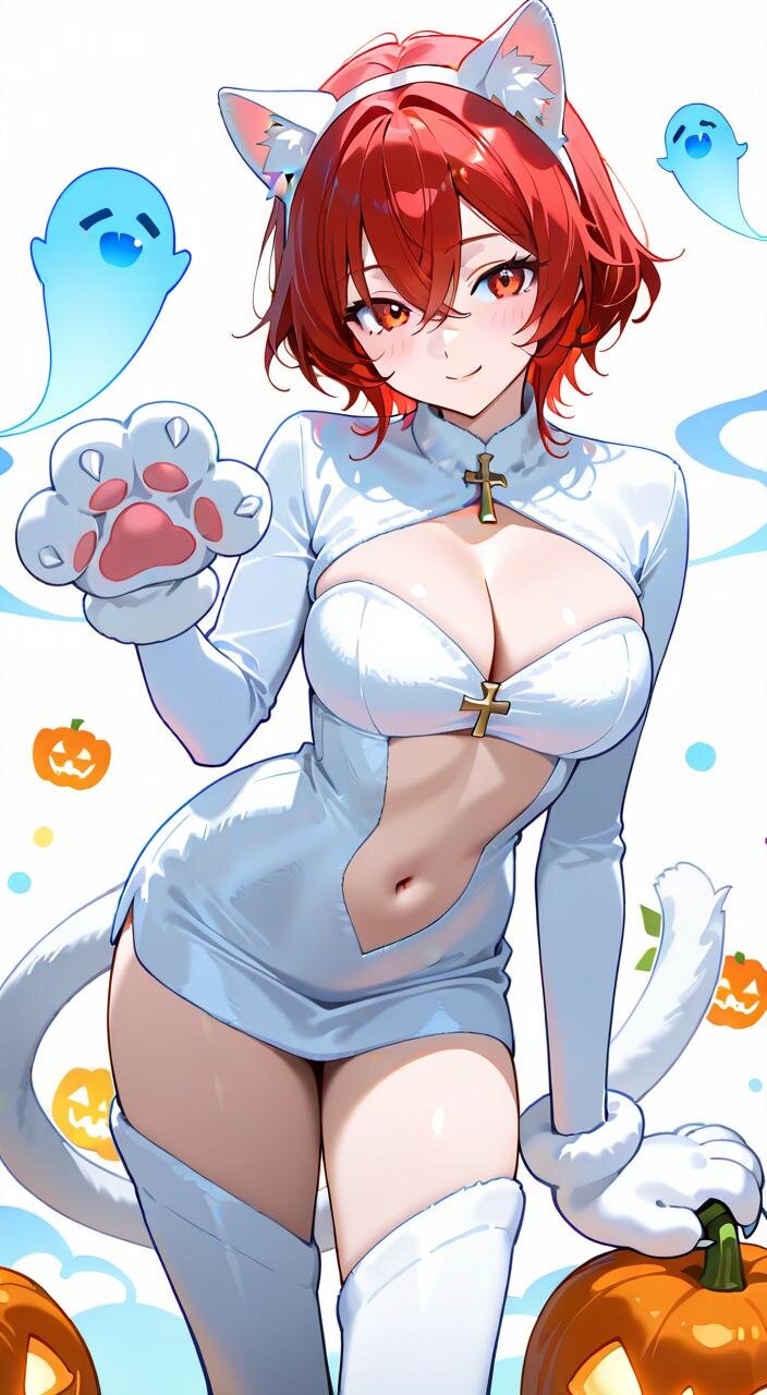 街の灯りがオレンジに染まる中、霧島紅葉は白いオオカミのコスプレで現れた。