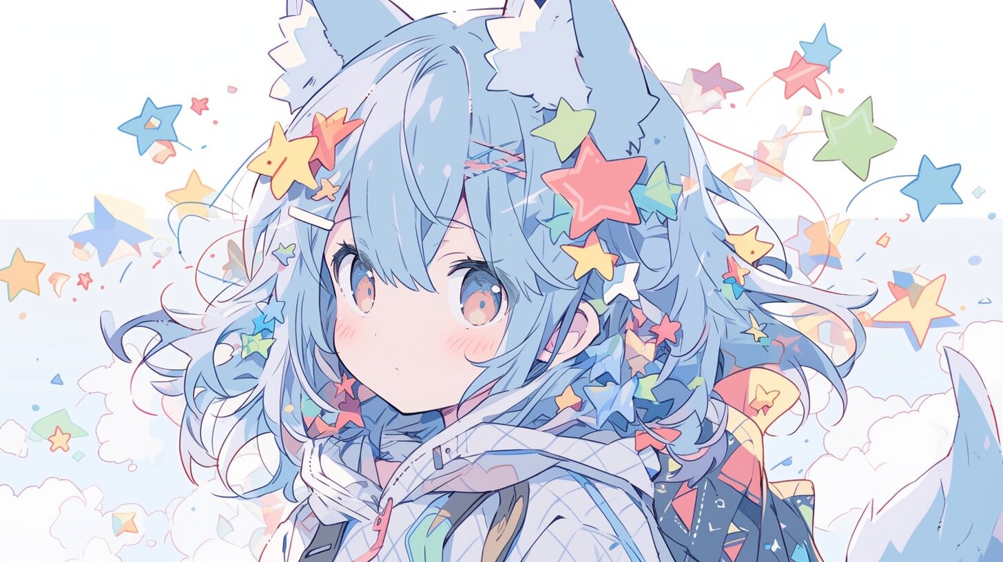 青い髪に星の冠をまとい、ふわふわの狐耳を揺らして旅する少女。彼女は夜空の守り手として、散らばった星々を集めながら、未知の世界を探検する。バックパックには夢の欠片が詰まり、毎晩新しい星座を描き出す。ふと振り返ったその瞳に、どんな物語が映っているのだろう? あなたも一緒に星の旅に出かけてみませんか?