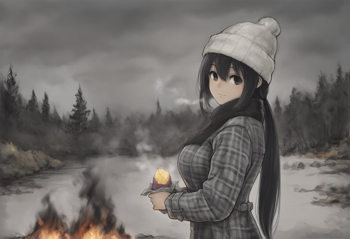 モノクロ焼き芋ガール
