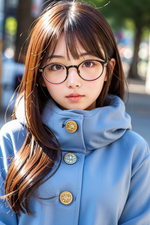 masterpiece,hyper detailed,16k,raw photo,realistic, japanese woman,23yo, BREAK cute,pretty, slit eyes, round face,hyper detailed face,hyper detailed eye, beautiful eye,extremely detailed, medium hair,bangs, thin body,tall body,perfect anatomy,perfect proportions,extremely detailed body, face_focus, winter clothes, duffel_coat, glasses,