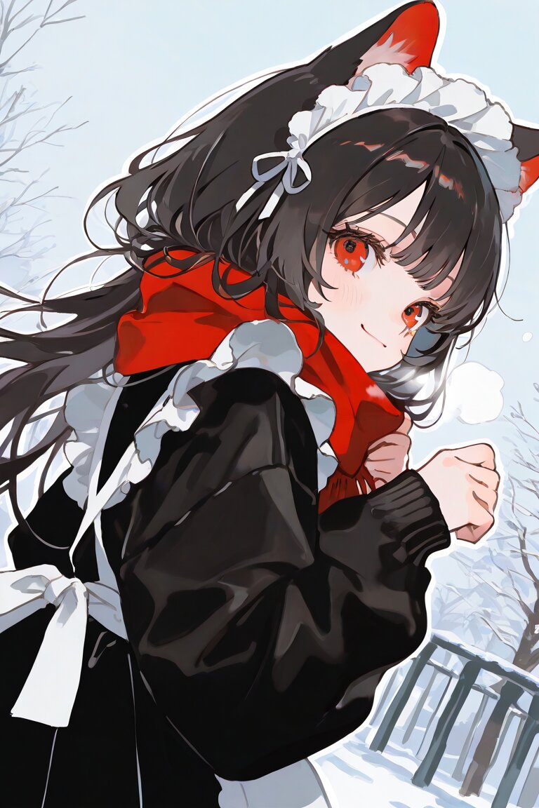 メイド服に真っ赤なマフラー、とっても可愛い組み合わせですね🧣❄️