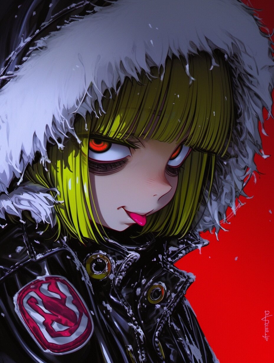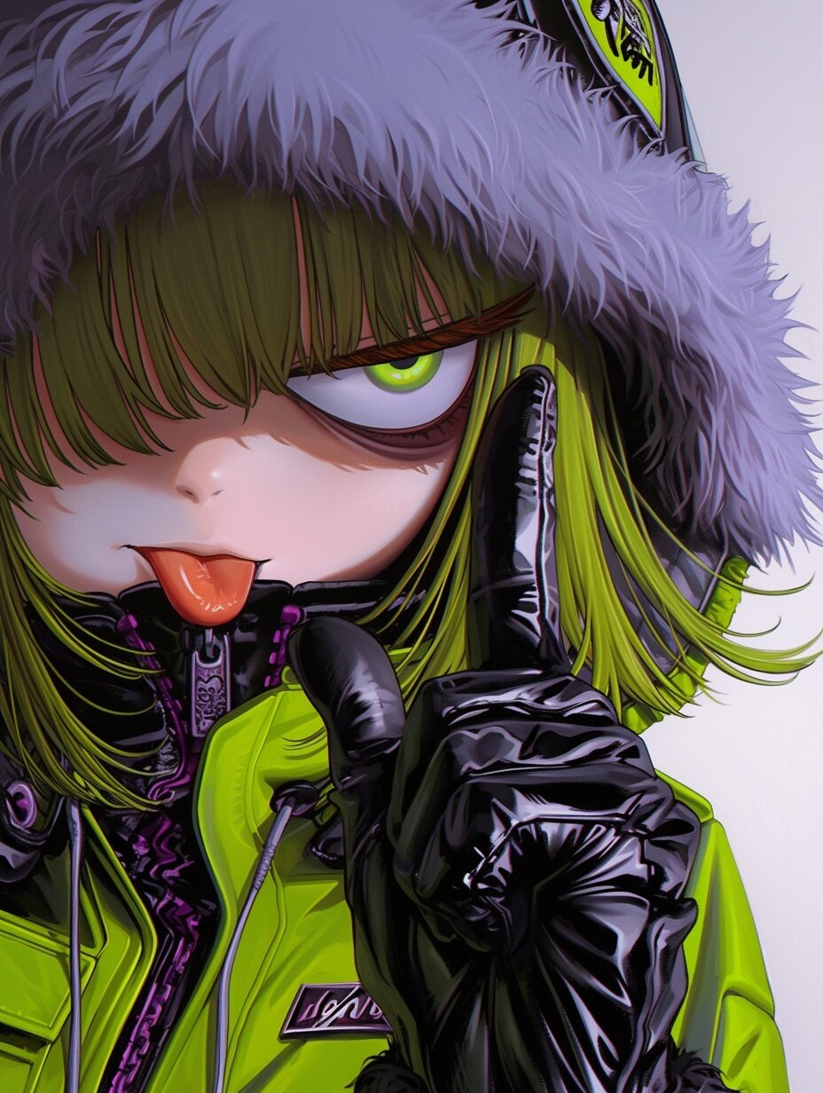 まぁさんのこの独特なジト目が好きです。ストリートファッション系というのでしょうか、ちょっと悪ガキっぽい感じのするモコモコジャケットがキャラと相まって目が離せなくなります。