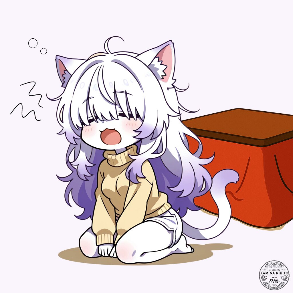 紫猫ちゃん「おこたは暖かくてすぐ眠くなっちゃうよねぇ(๑ ´͈ ᗨ `͈ ๑)」
