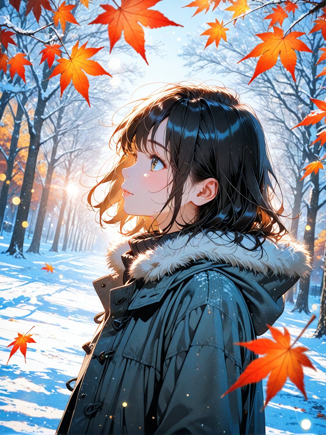 紅葉と雪と光が芸術的に綺麗です☆