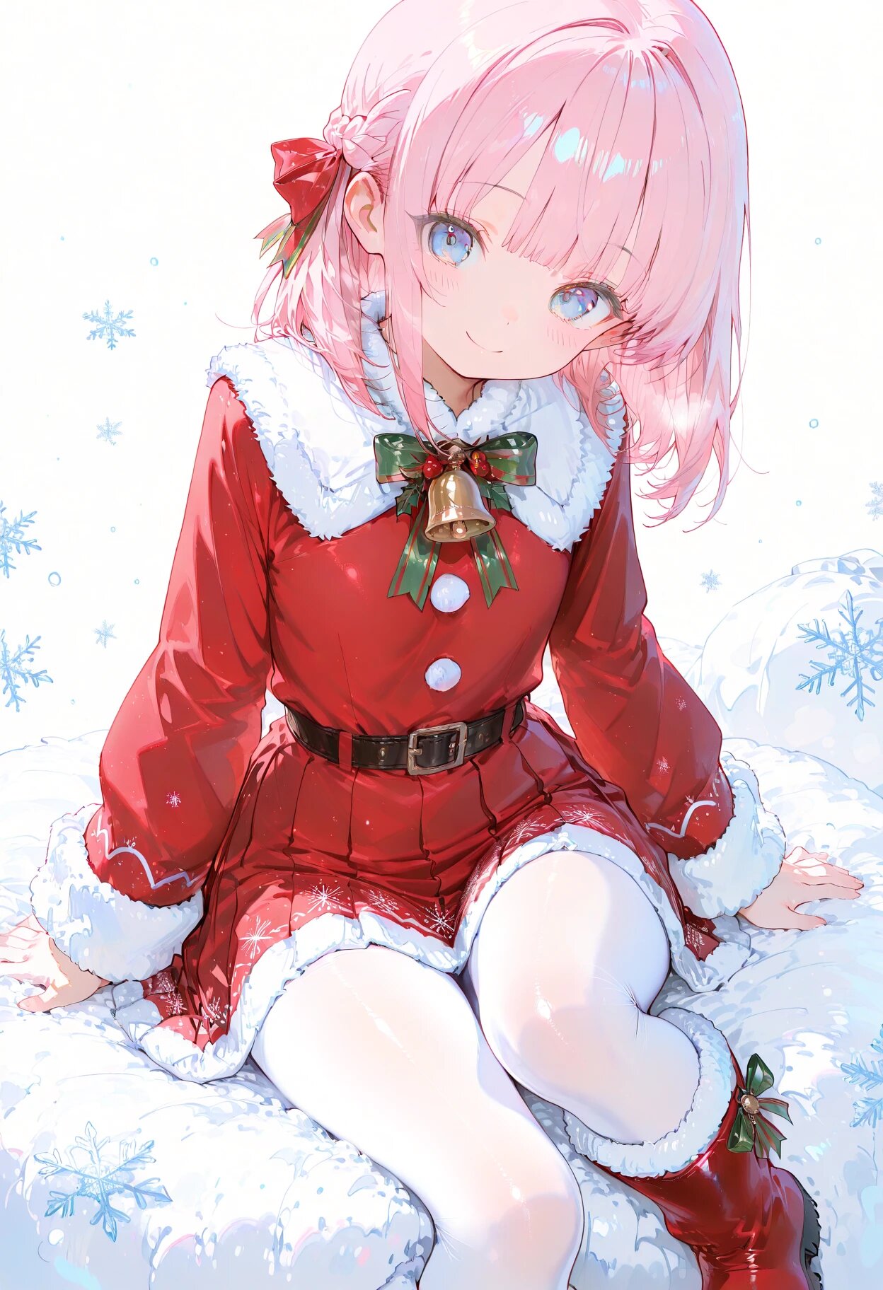 モコモコのサンタコス❢ 可愛いです‼ 首元の蝶ネクタイ風のクリスマスベルがメッチャおしゃれです。