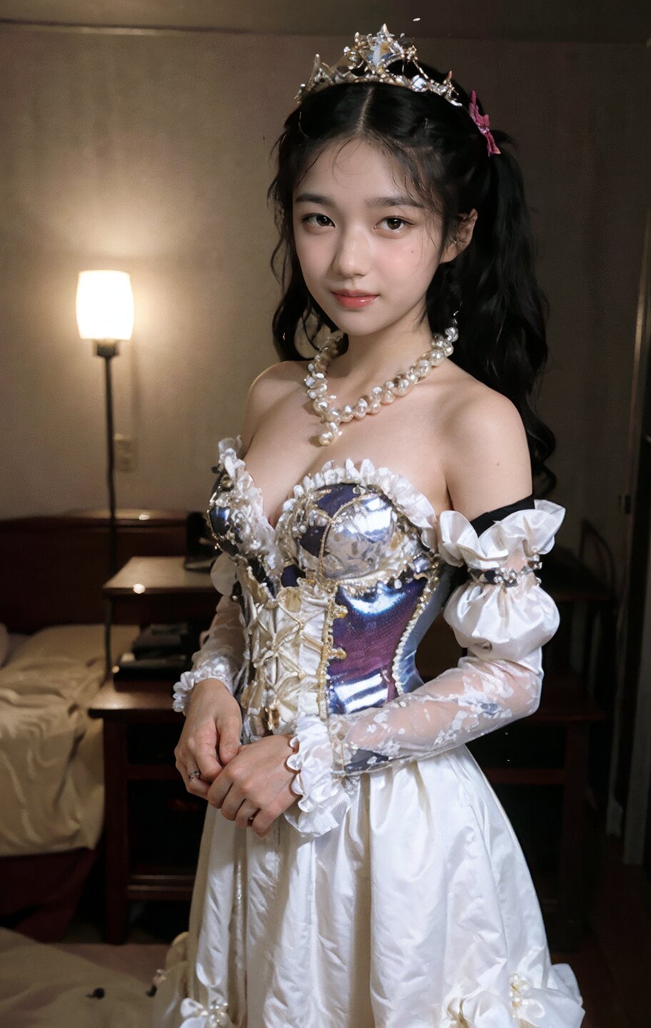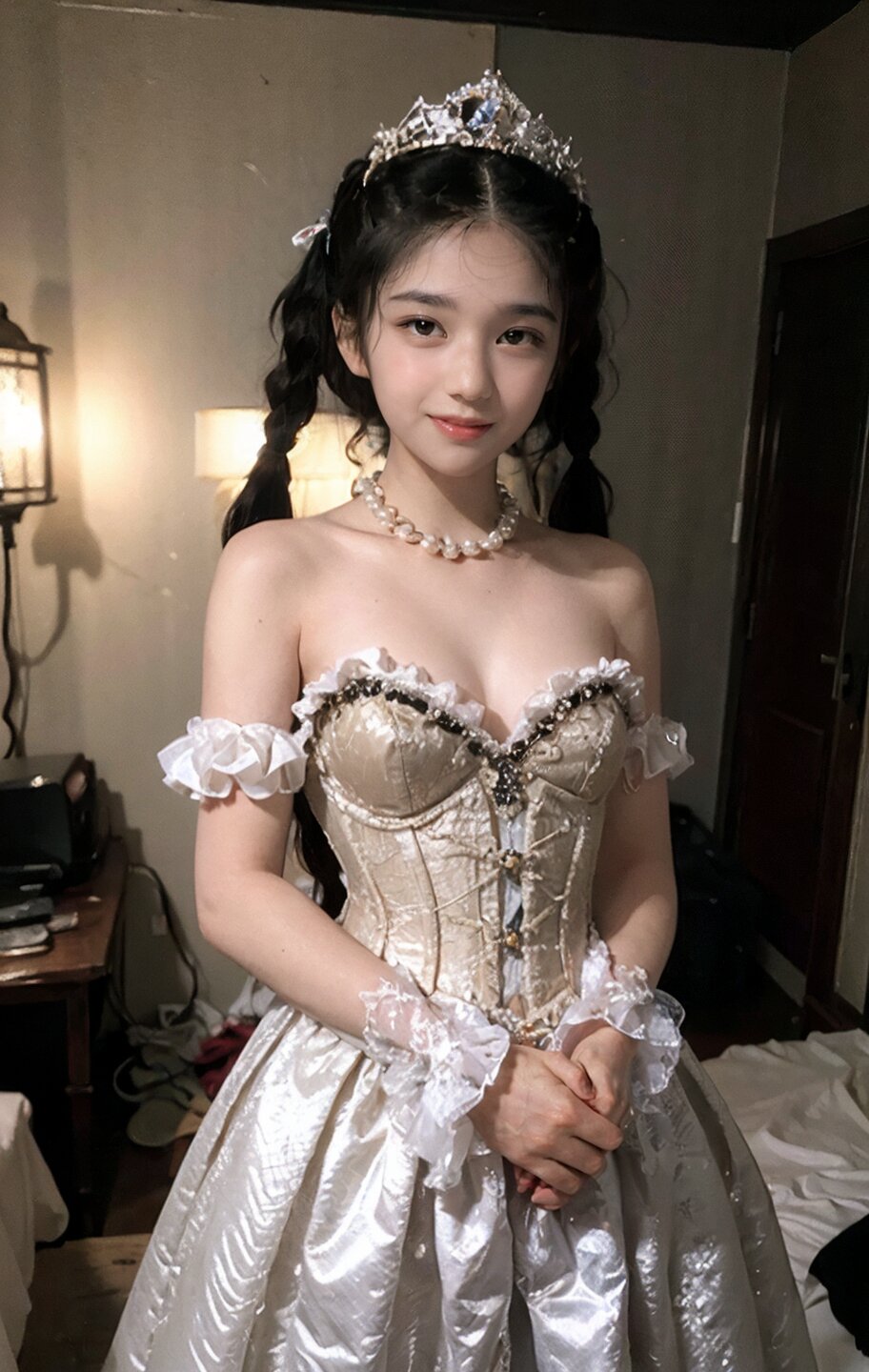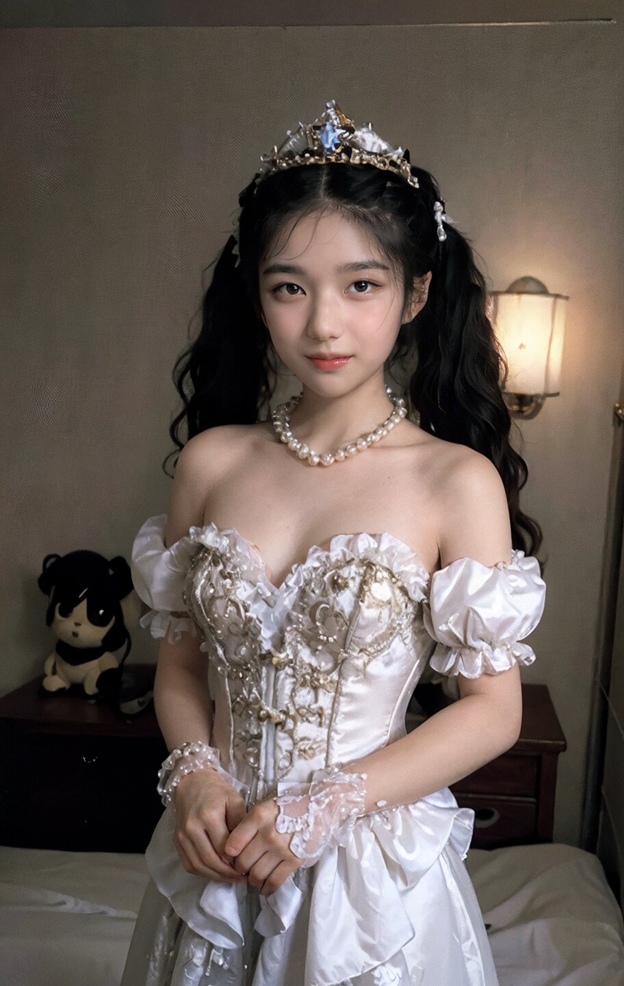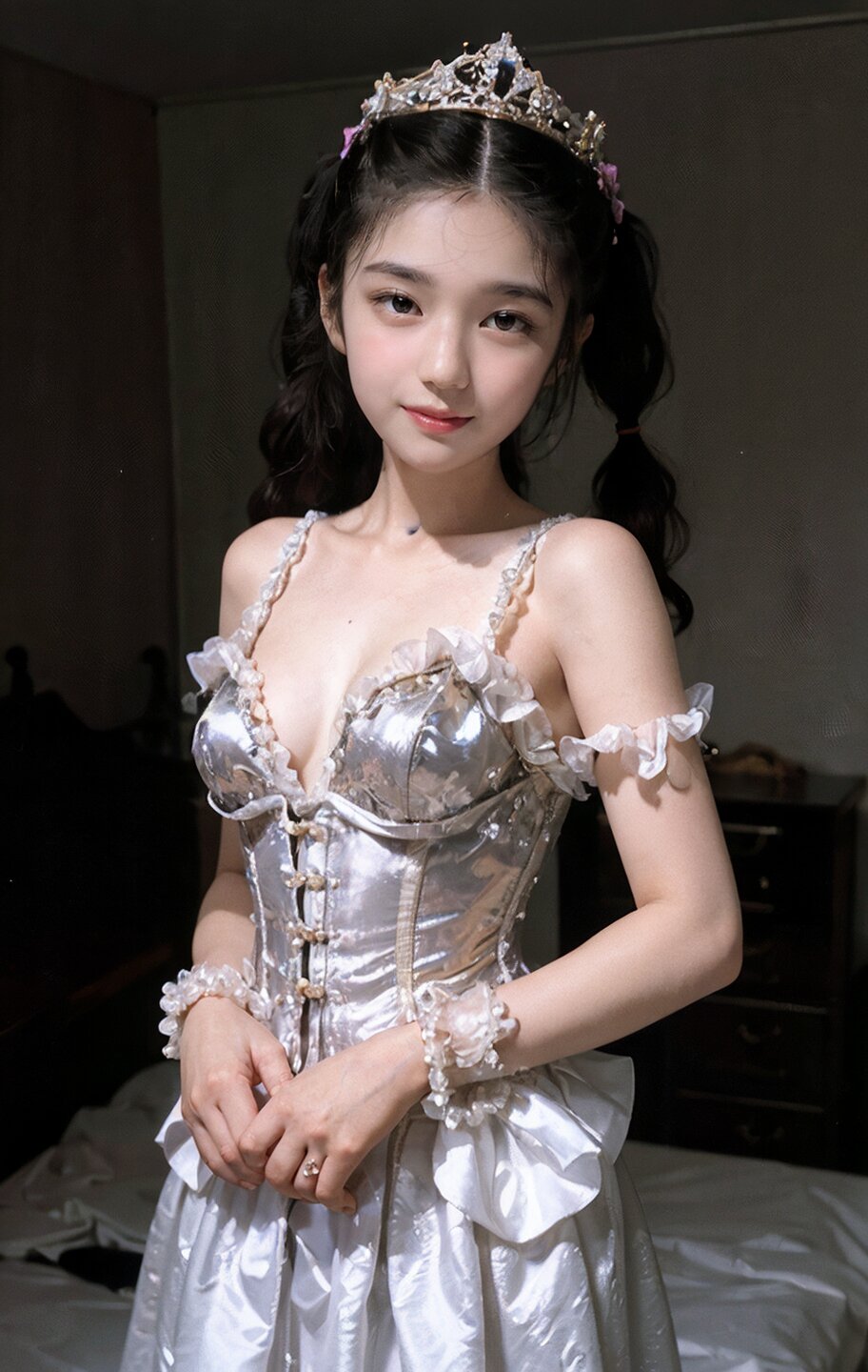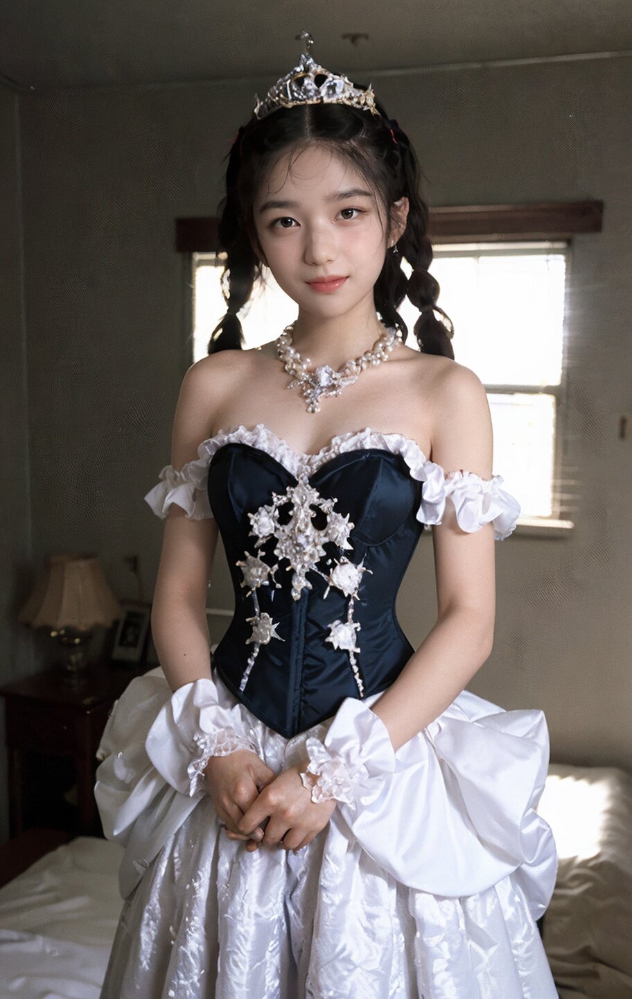 from front, photography, (masterpiece:1.3), (best quality:1.3), (ultra-detailed:1.2), 8K, HDR, (incredibly absurdres:1.2), Kodak portra 400, film grain, lens flare, (vibrant color:1.2), ray tracing, dynamic angle, cinematic angle, blurry background, 1girl, solo, 16 years old, (((style-princess))), (perfect body), (((face))), black hair, (((long twintails))), (cowboy shot, standing in the dark bedroom: 1.6)), medium breasts, highly detailed, beautiful detailed eyes, beautiful detailed glow, detailed light, shiny skin, shiny hair, Japanese old house, <lora:shi_v01:0.8>