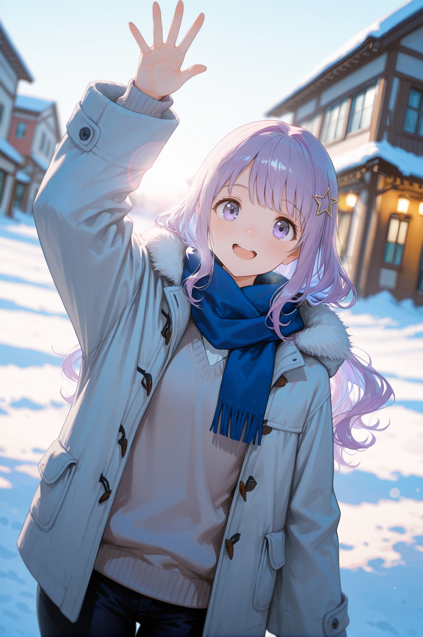 ウィンターリゾートにて、オシャレな冬コーデに身を包んだまゆらさんをイメージして生成してみました(*´▽`*)💗