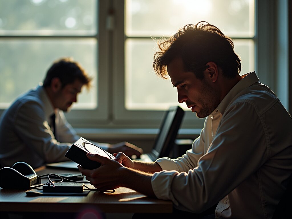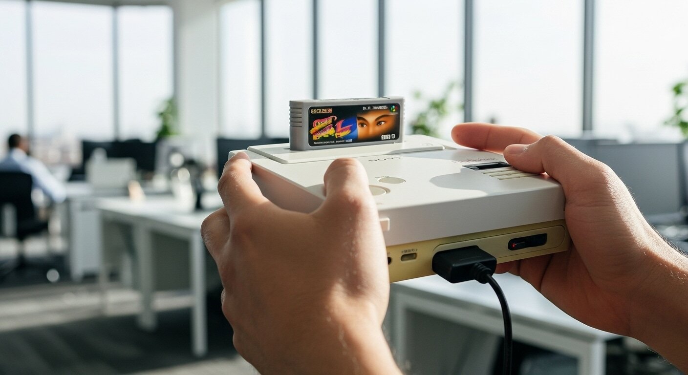 It was June 1991. Sony, whose contract with Nintendo had been unilaterally terminated, was consumed by anger and sorrow. The PlayStation, a Super Nintendo compatible console Sony had planned to release, could no longer be launched. The frustration was palpable as they clenched the PlayStation tightly in both hands. Though their face was hidden, the image of those hands gripping the PlayStation conveyed their overflowing regret. The setting was an office inside a building. Sunlight streamed in through the windows, but the mood inside the office was far from bright.