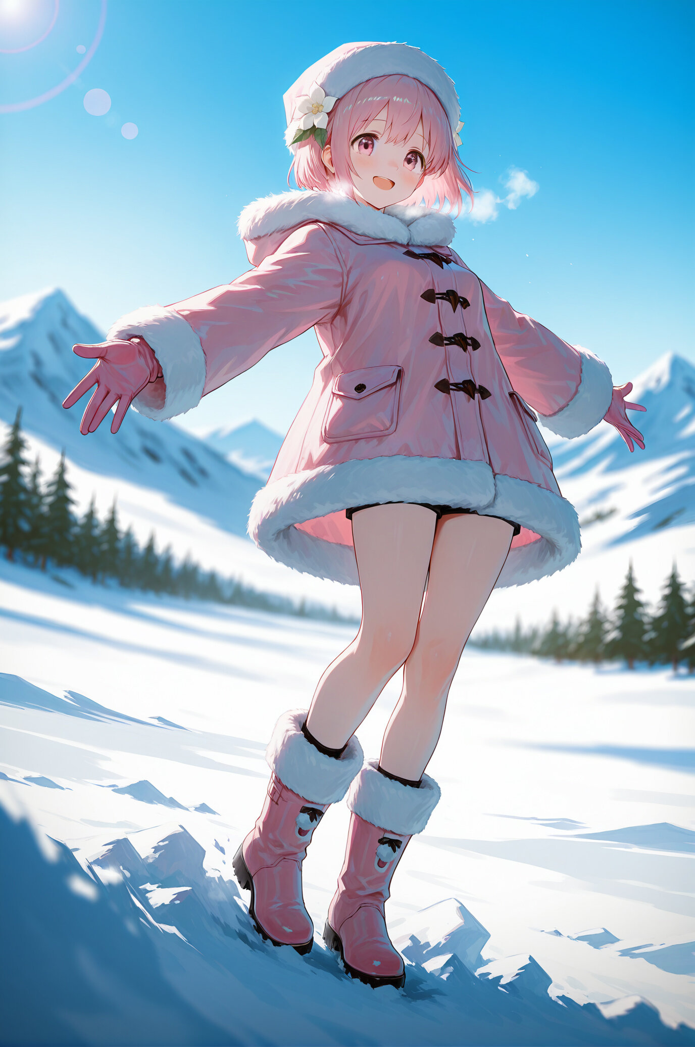 イベントが終わって冬のリゾートで楽しむ三人を生成してみました(*´▽`*)💗