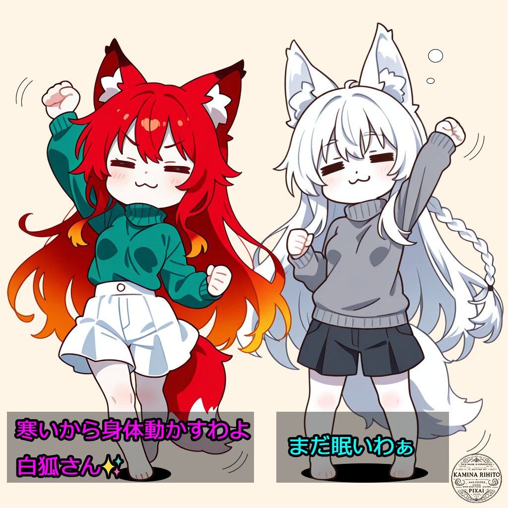 赤狐ちゃん カミナリヒト 2025/11/11使用したAI その他 年齢制限 全年齢 いいね7 シェア 赤狐ちゃん「寒いから身体うごかすわよ!白狐さん✨( ⸝⸝⸝´꒳`⸝⸝⸝)」白狐さん「まだ眠いわぁ(๑¯﹃¯๑)」火曜日の赤狐 プロンプト なし コメント 送信 カミナリヒト 2025年1月より活動開始 530投稿58フォロー61フォロワー 京子ちゃん「うちのマスター、AIイラストクリエイターやねん。よろしぅおたの申します~。」 youtube始めました。よかったら覗いてみてください。 フォローする 他の作品 全てを見る 狐耳ちゃんと猫耳ちゃんとゾンビ婆ちゃん 金猫ちゃん 黒猫ちゃん 桃猫ちゃん 紫猫ちゃん 青猫ちゃん 青猫ちゃん 赤狐ちゃん 赤狐ちゃん 狐耳ちゃんと猫耳ちゃん「もう12月」 金猫ちゃんと緑狐ちゃん 狐耳ちゃんと猫耳ちゃん 「なわとび」 黒猫ちゃん 桃猫ちゃん 紫猫ちゃんと青猫ちゃん 紫猫ちゃん 青猫ちゃん 猫耳ちゃん達とゾンビ婆ちゃん もっと見る