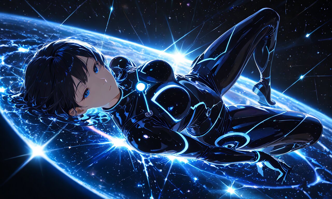 1 lady, (bodysuit), ((floating, universe)), sleeping