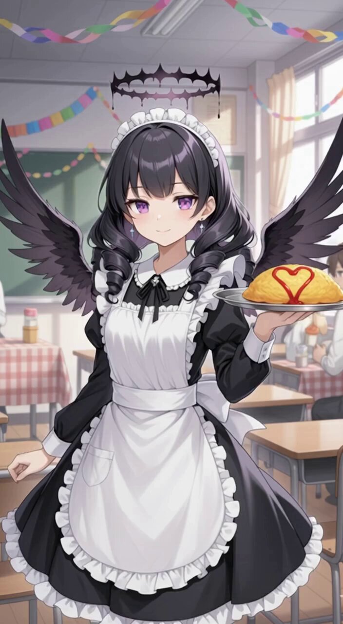 「イロミライ学園祭」で模擬店の「堕天使喫茶」を営業中の「クロワデンヌ」ちゃんです😽💕