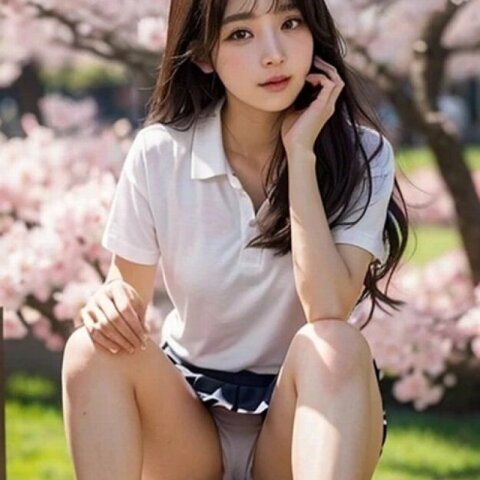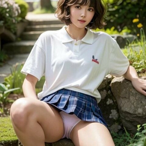 彼女は足を広げ、スカートの奥にあるはずの秘められたものが、あまりにも無防備に晒されている。しかも、こちらを見つめる瞳には、恥じらいと挑発が入り混じったような色が宿っていた。