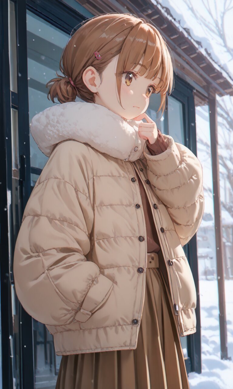 score_9, score_8_up, score_7_up, score_6_up, score_5_up, score_4_up, source_anime BREAK 1girl, solo, anime, pose, 1girl, brown short twintail hair, winter fashion