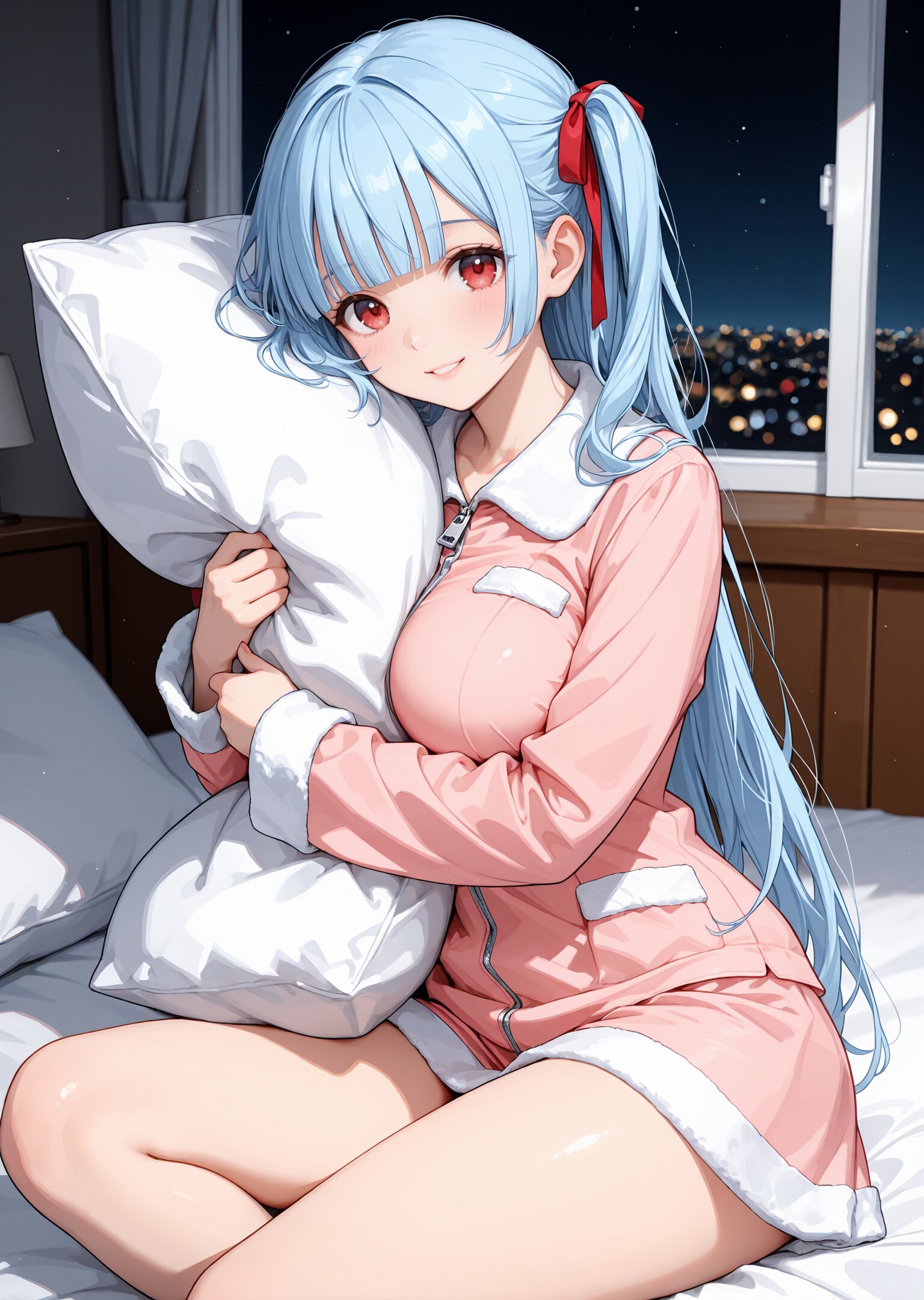 最後は、ピンクのパジャマで「今日もおつかれさま」の気持ちをこめて。