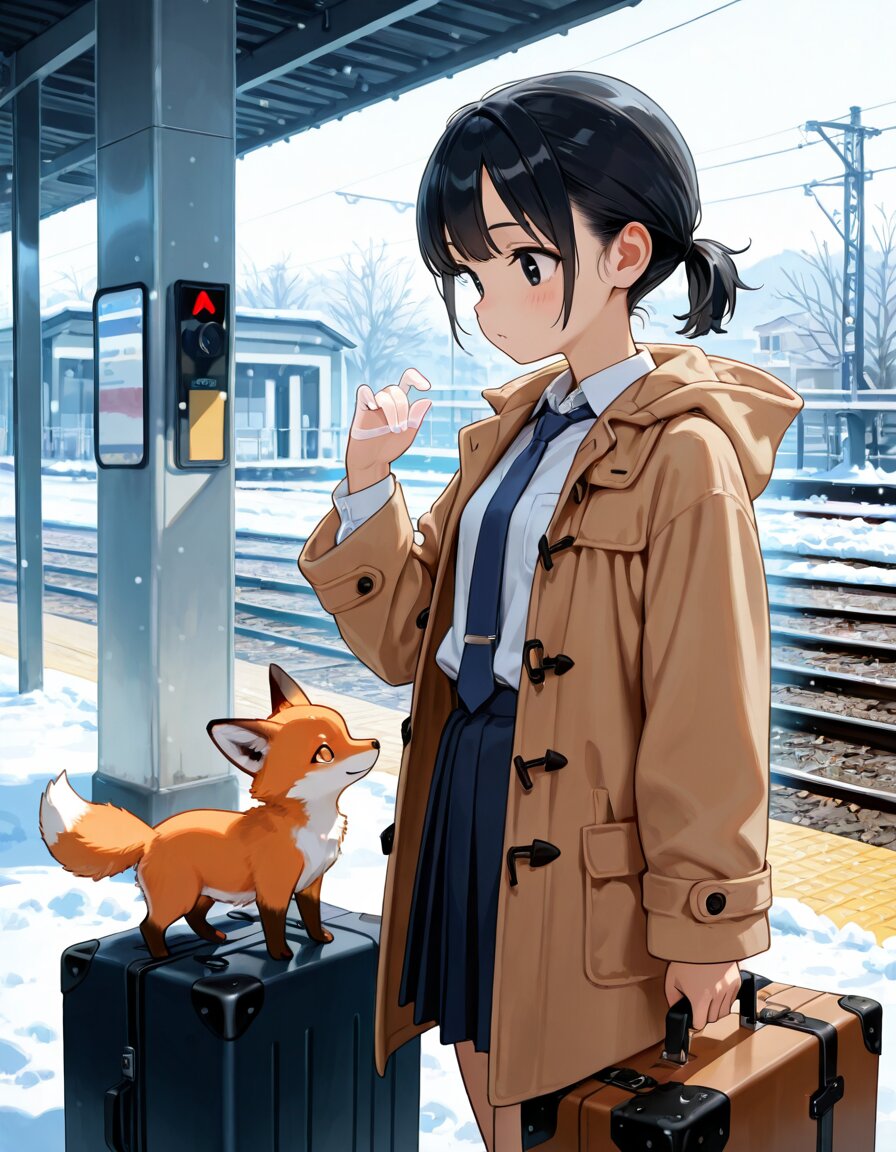 雪解けまじかの駅のホーム&旅立ちをイラスト化してみました。