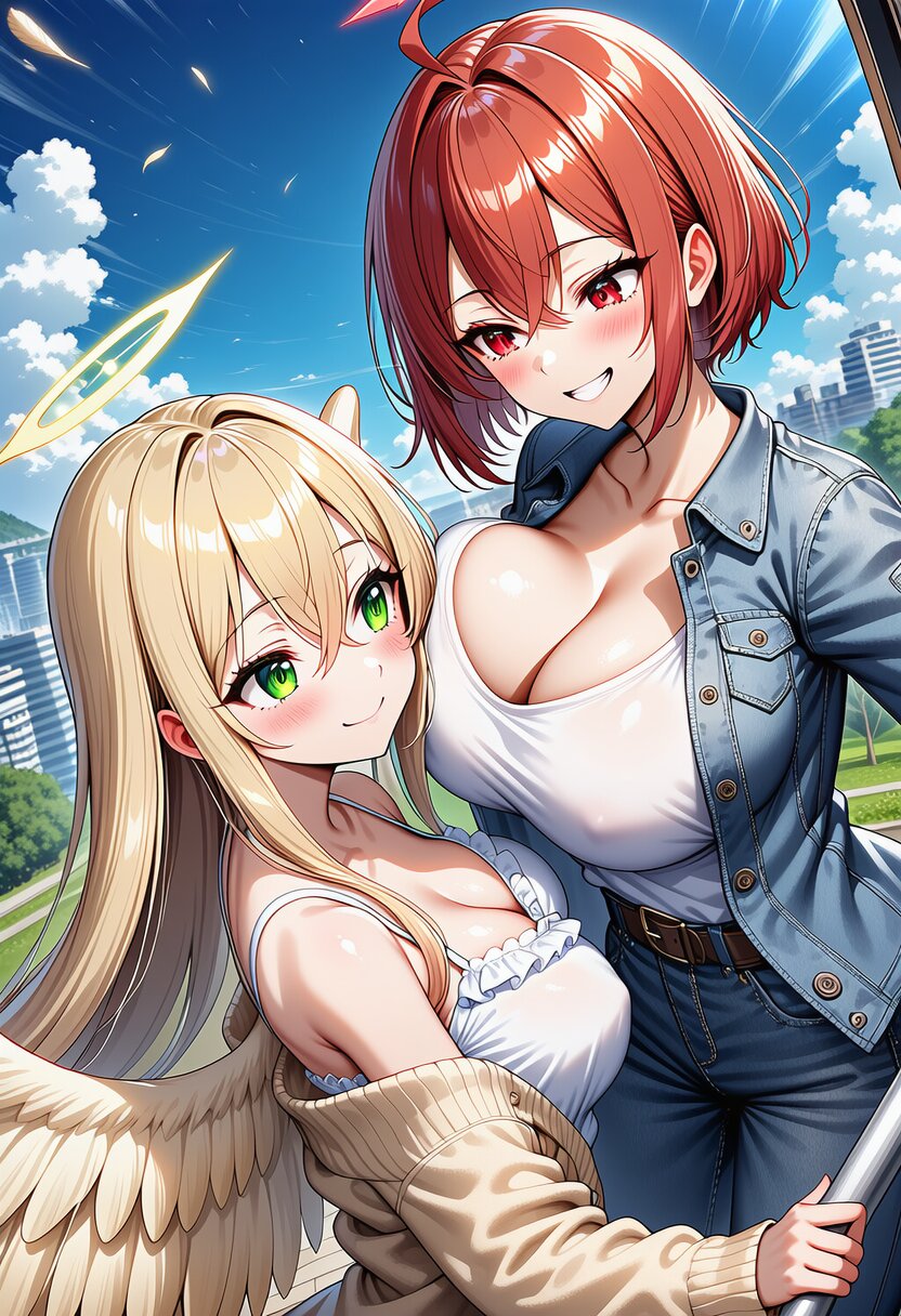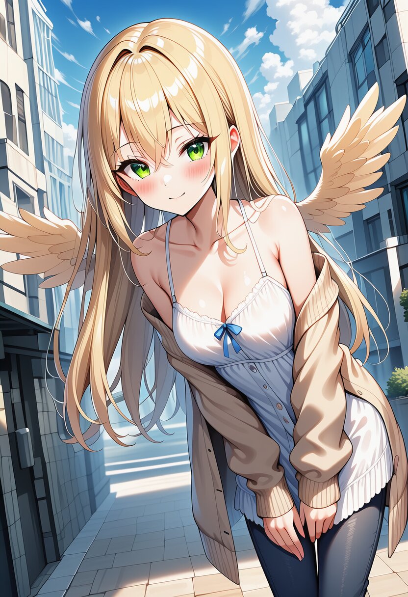 ai-generated, year 2024, anime style, 1girl, solo, midday, outdoor, in modern town, dynamic angle, masterpiece, best quality, ultra detailed, perfect fingers, high resolution, absurdres, perfect anotomy, detailed background, unity 8k wallpaper, location, very aesthetic, masterpiece, no text